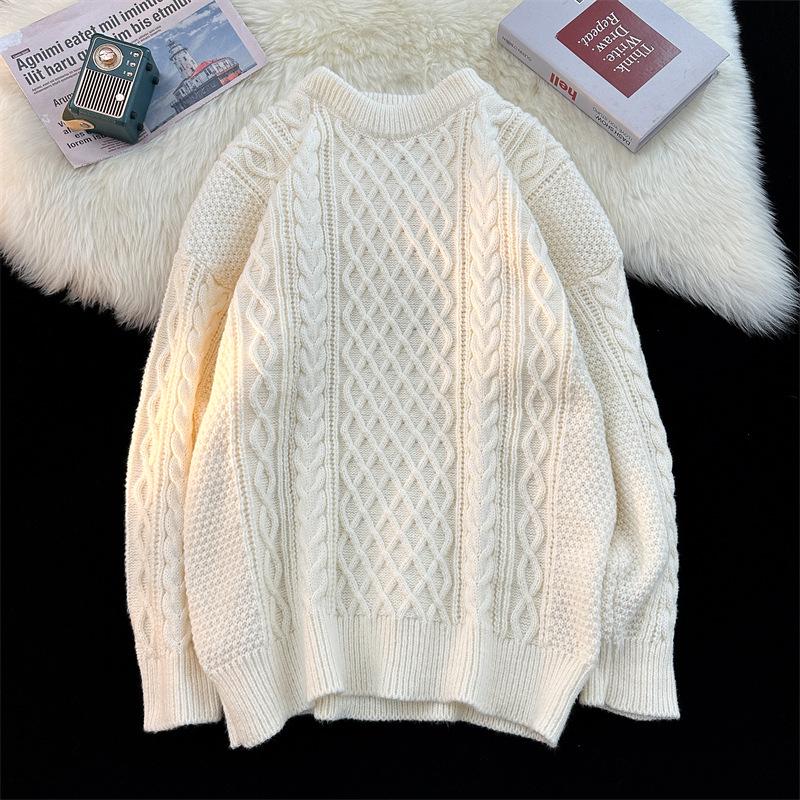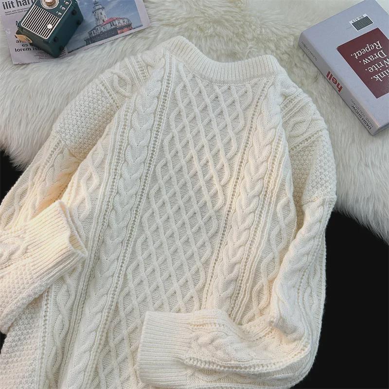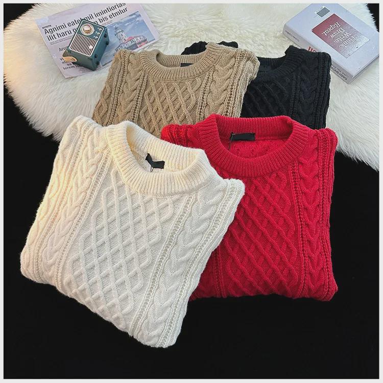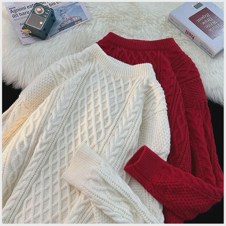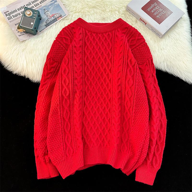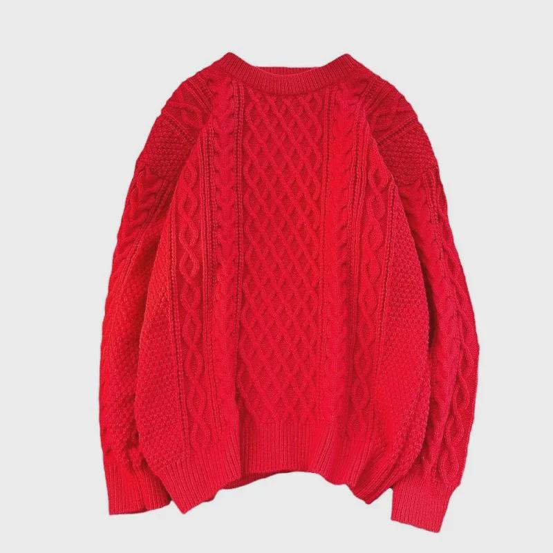 Праздничный красный новогодний свитер унисекс, пуловер с круглым вырезом, модная свободная вязка для весны и осени