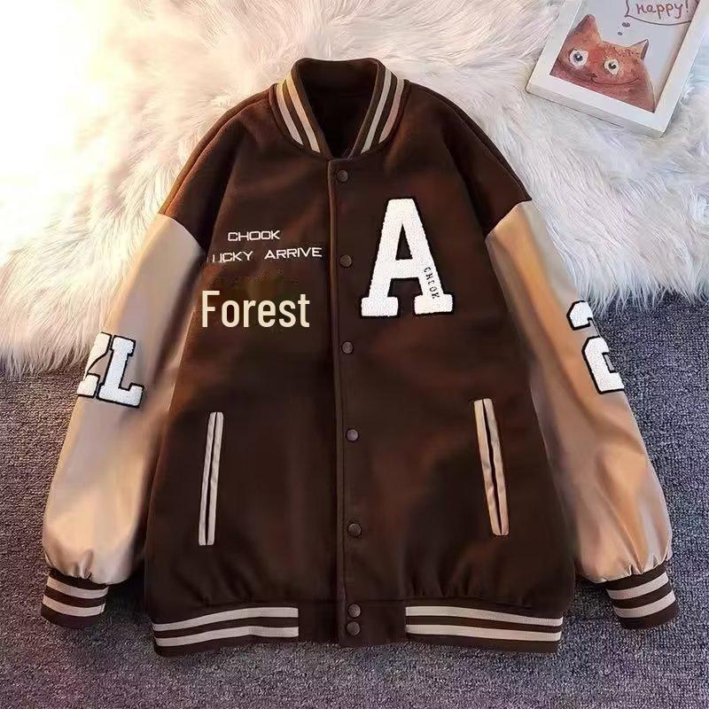 Мужская бейсбольная куртка в стиле ретро на осень кофейного цвета с вышитыми буквами и полотенцем, дизайн сращивания для пар. — купить товар онлайн с бесплатной доставкой по всему миру!
