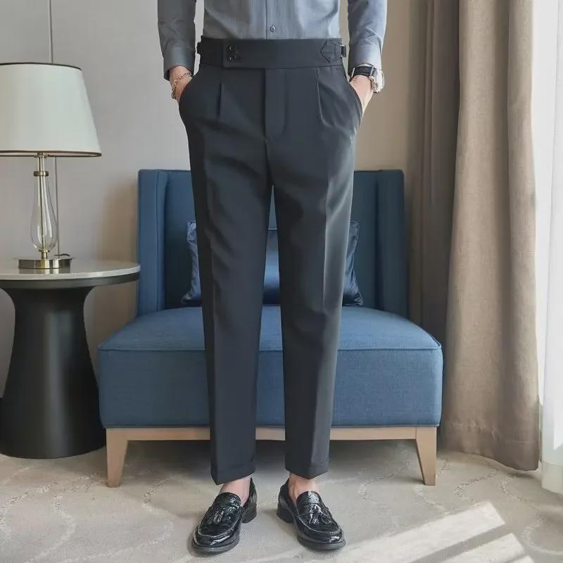 Мужские брюки от костюма 'Неаполь' с высокой посадкой : Универсальный, Модный Бизнес-кэжуал, Британский стиль, Приталенный крой — купить товар онлайн с бесплатной доставкой по всему миру!