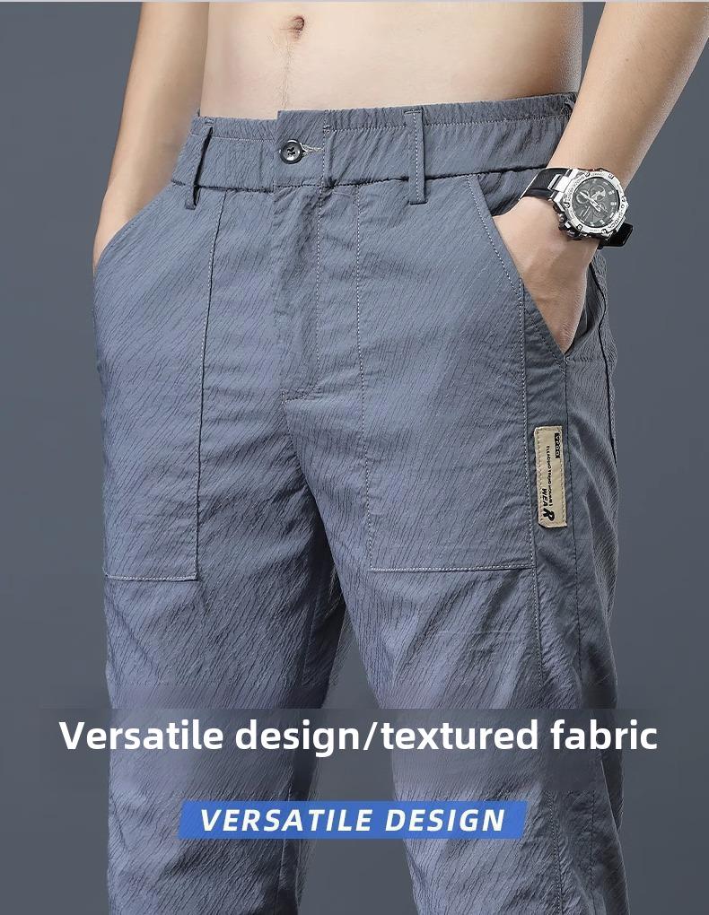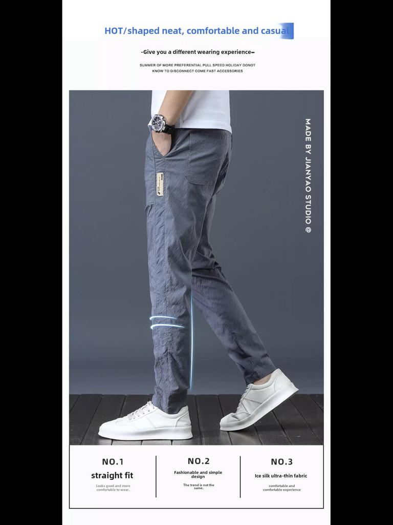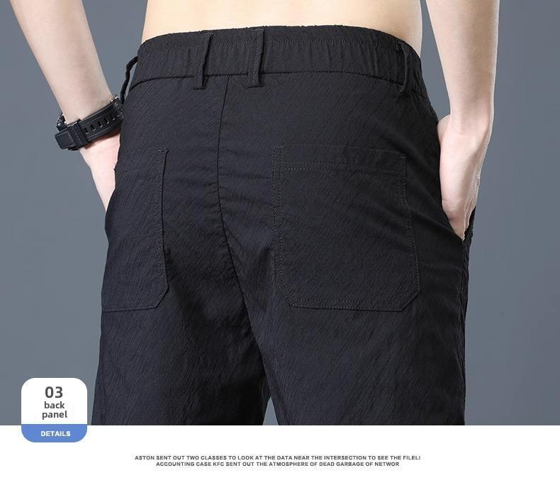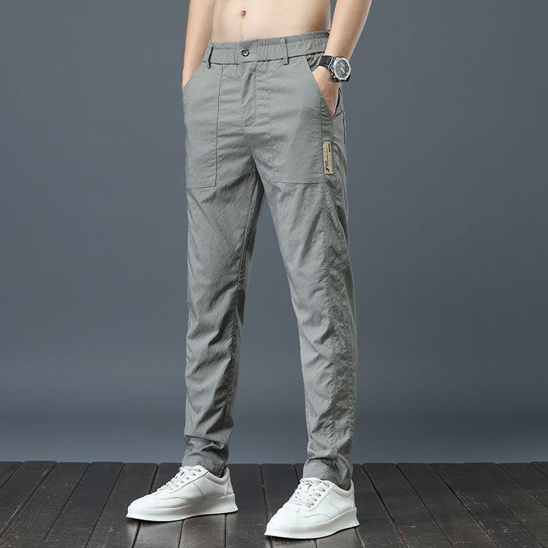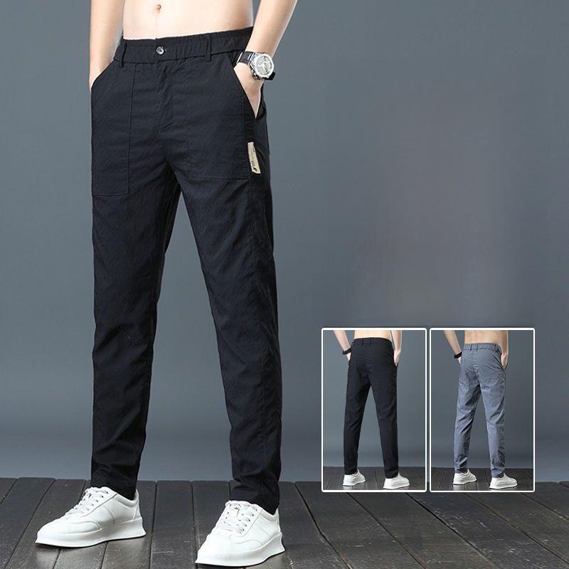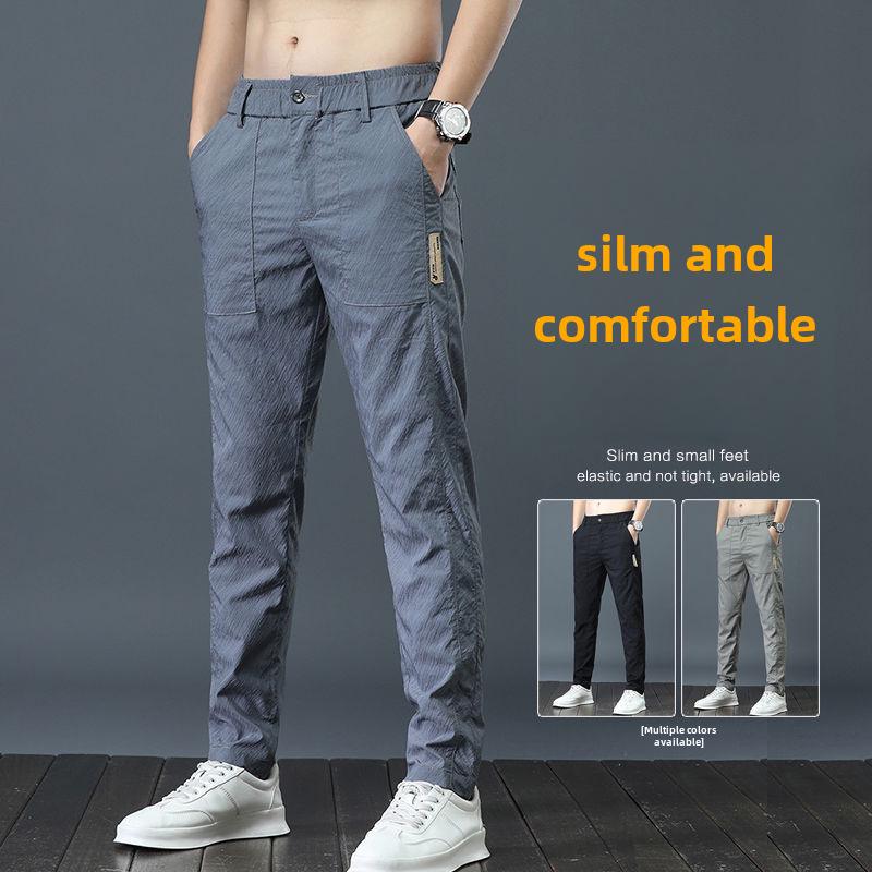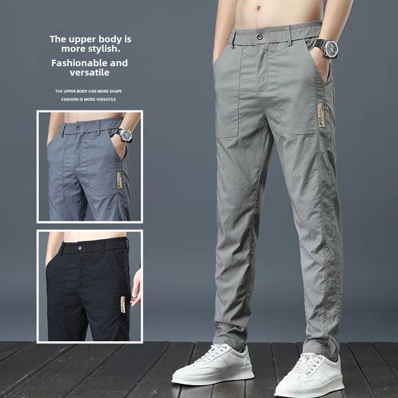 Мужские летние легкие прямые брюки Ice Silk Elastic - дышащие, быстросохнущие, свободного кроя, модные и универсальные длинные брюки