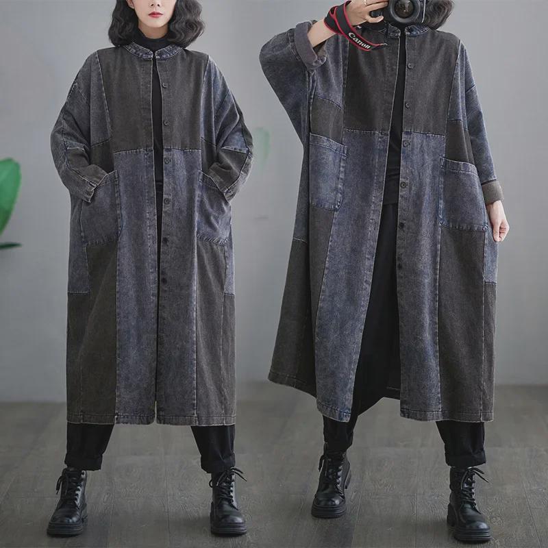 Женская свободная джинсовая ветровка с контрастной строчкой - стираная, средней длины, стиль весна/осень — купить товар онлайн с бесплатной доставкой по всему миру!