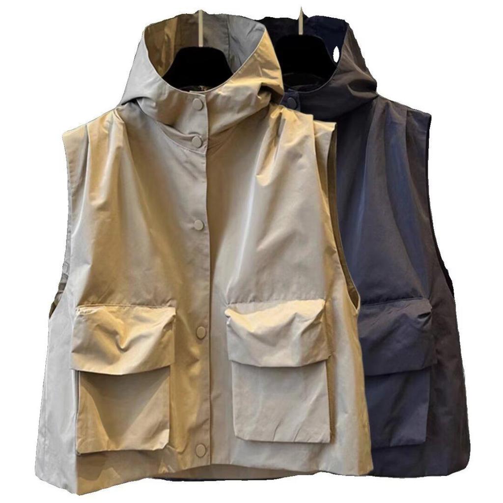 Летний легкий жилет с капюшоном: Свободная повседневная одежда унисекс в японском стиле