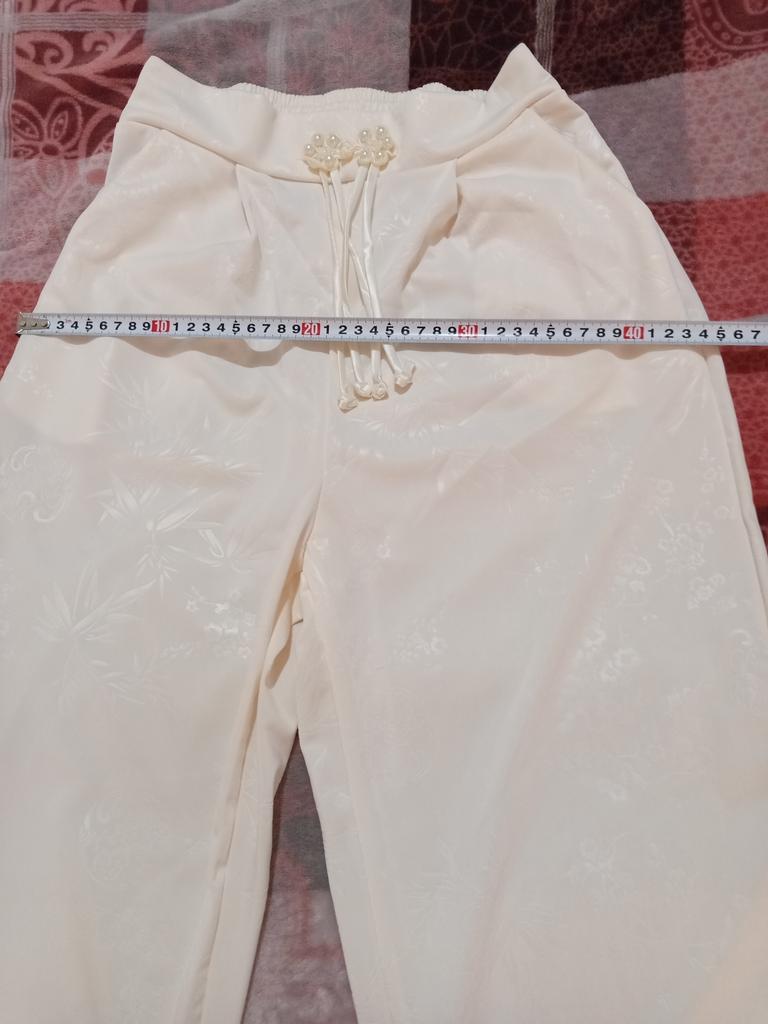 Весна/Лето 2024 Женские брюки с высокой талией из атласного жаккарда с широкими штанинами — купить товар онлайн с бесплатной доставкой по всему миру!