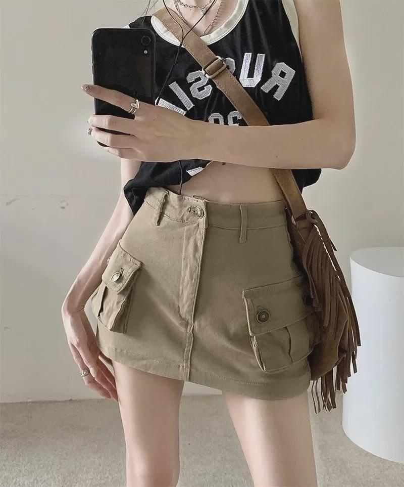 Khaki High-Waist Denim A-Line Skirt - Retro American Style for Women — купить товар онлайн с бесплатной доставкой по всему миру!