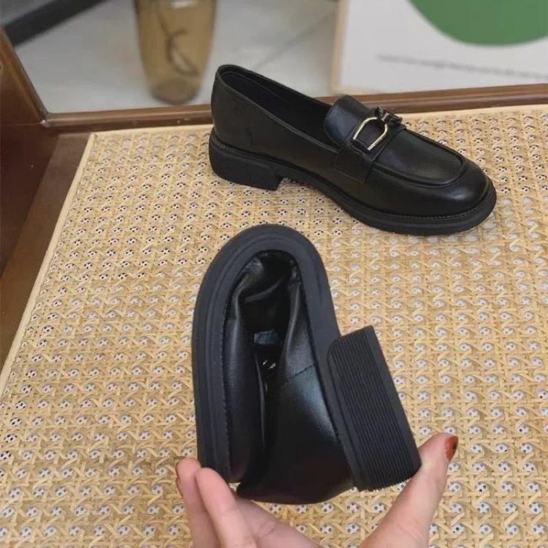 Женские черные мокасины с мягкой подошвой 2024 года — нескользящая кожаная рабочая обувь в британском стиле для весны и осени