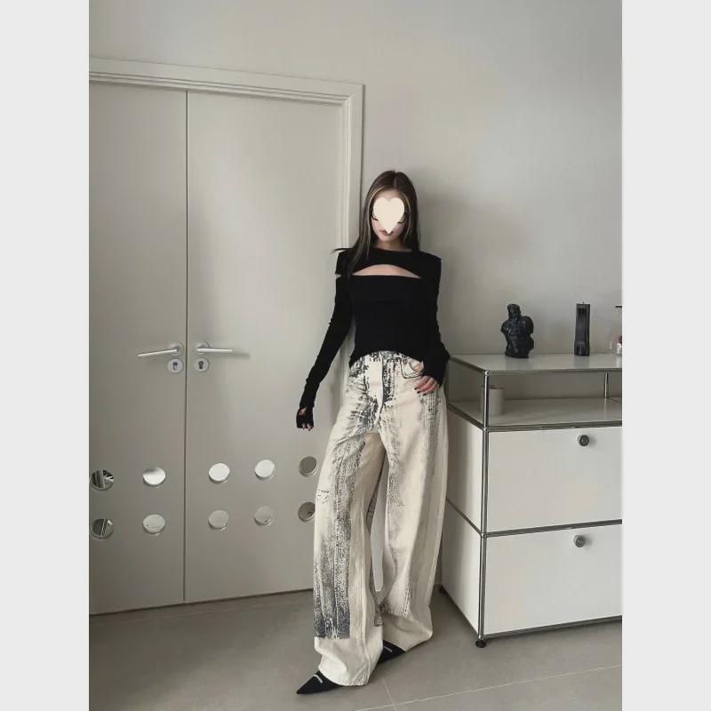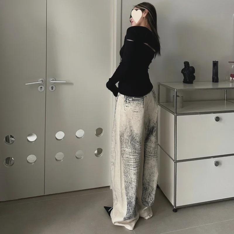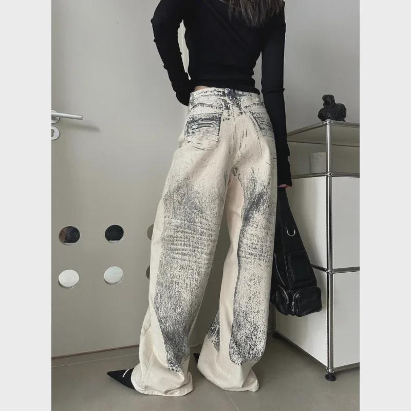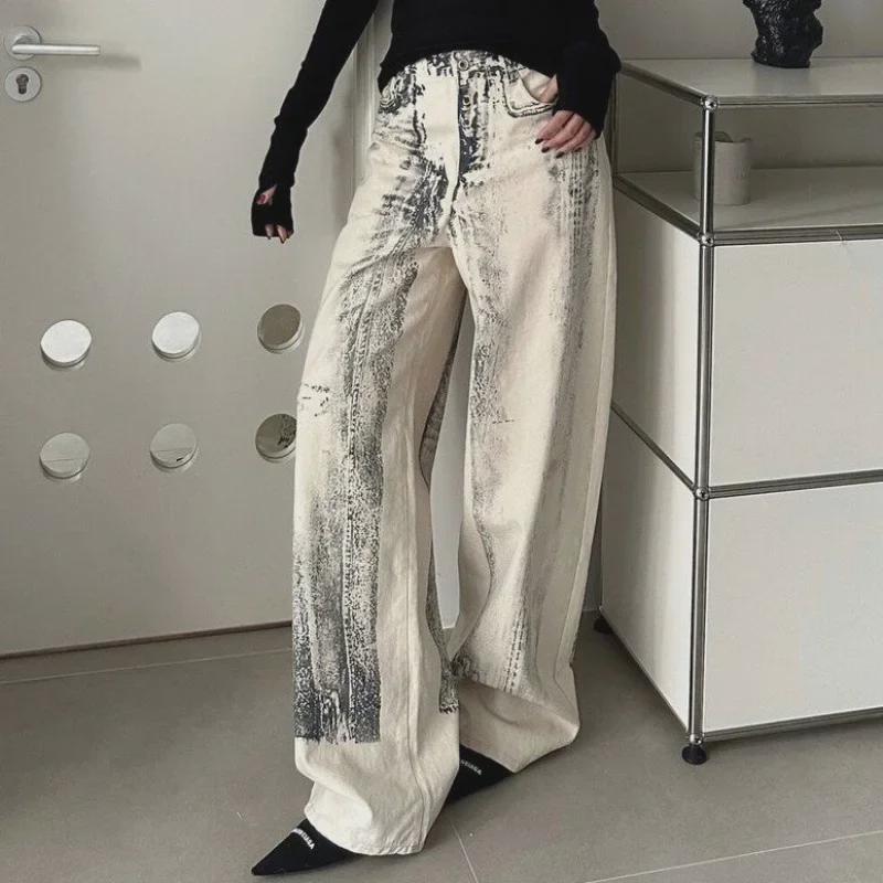 Трендовые прямые джинсы 2024 года с эффектом градиента и принтом тай-дай: Высокий, красивый, свободный покрой для улицы