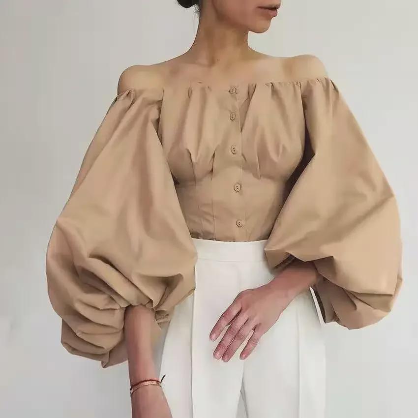 Летняя рубашка на одно плечо с французскими рукавами-фонариками 2021 года для женщин — купить товар онлайн с бесплатной доставкой до всему миру!