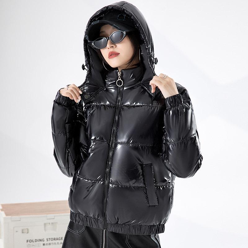 Женская короткая куртка-пуховик в корейском стиле - модное блестящее хлопковое пальто с капюшоном для зимы — купить товар онлайн с бесплатной доставкой до всему миру!