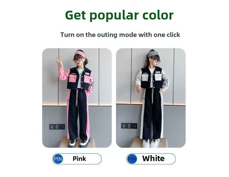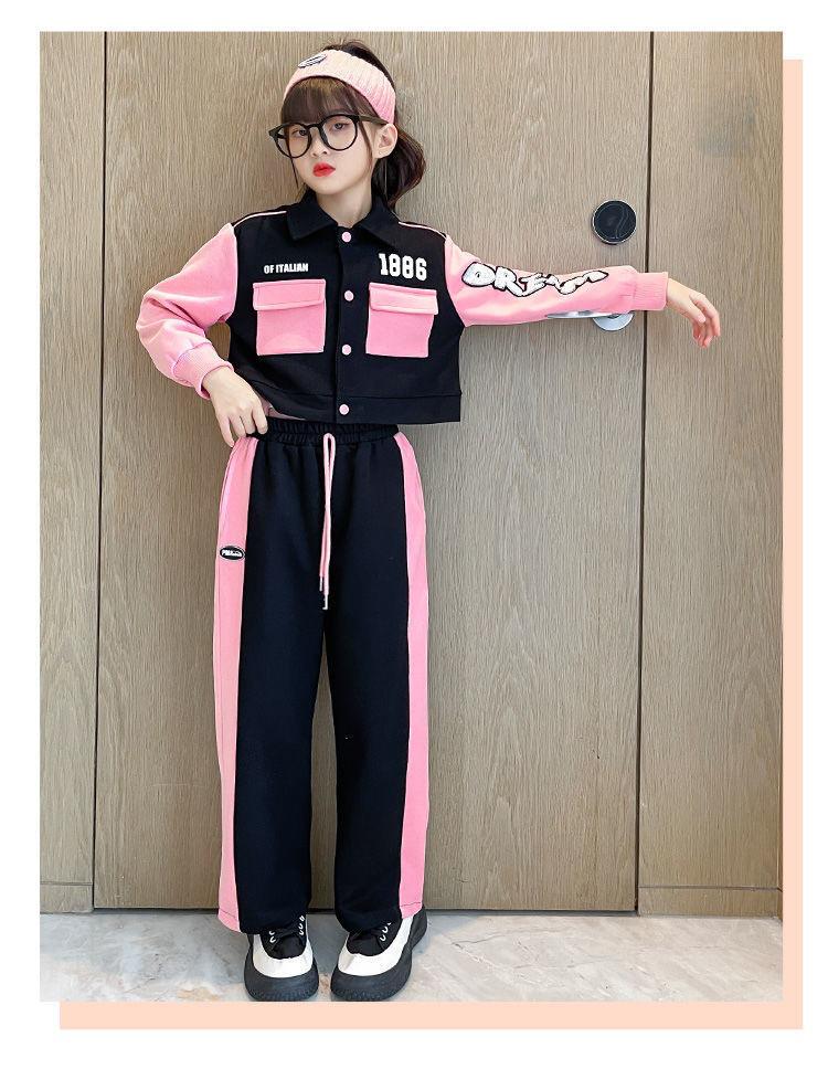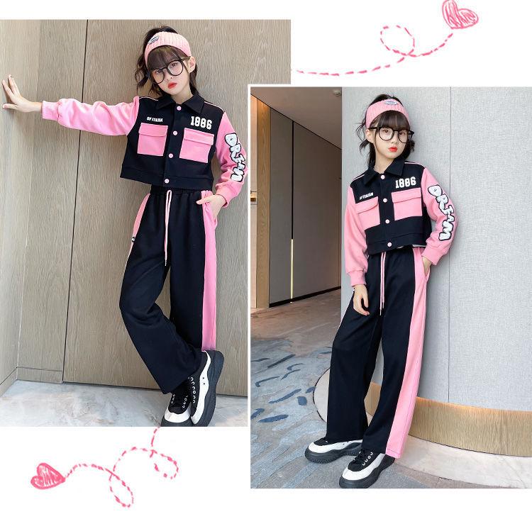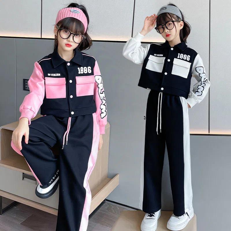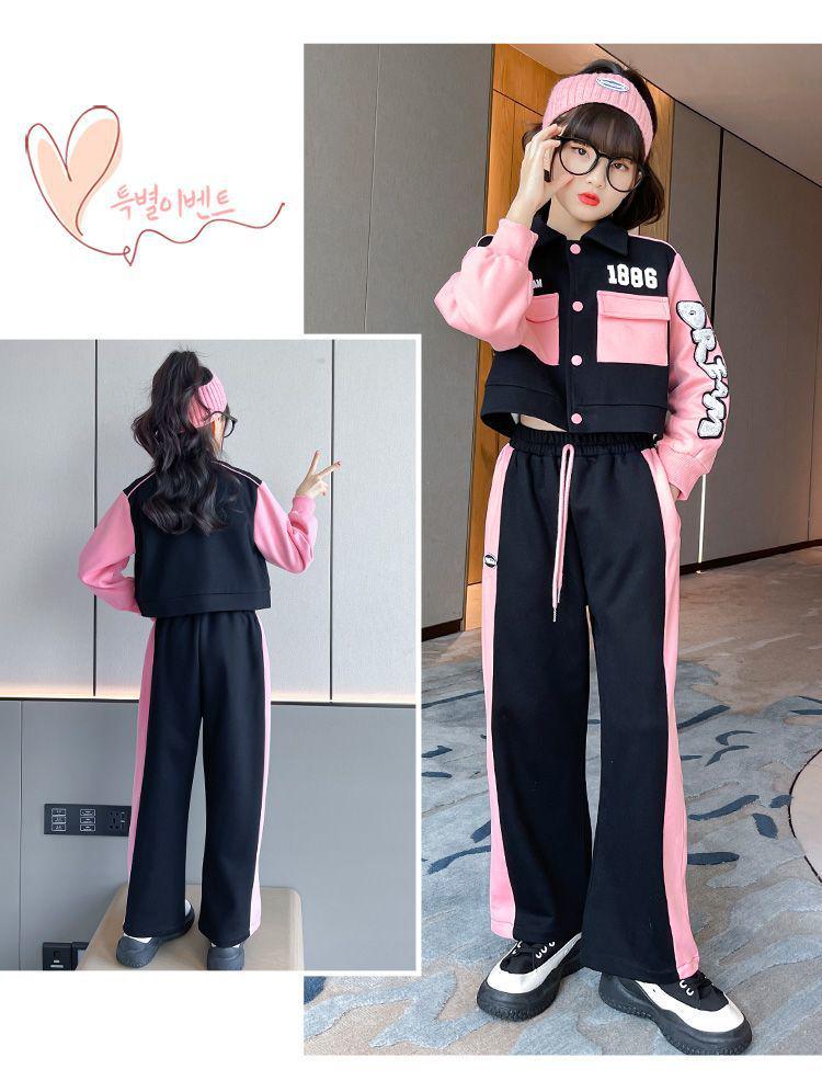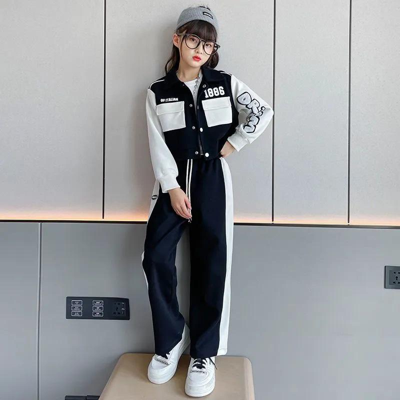 Спортивный костюм для девочек в корейском стиле: Осенняя бейсбольная куртка и комплект из двух предметов