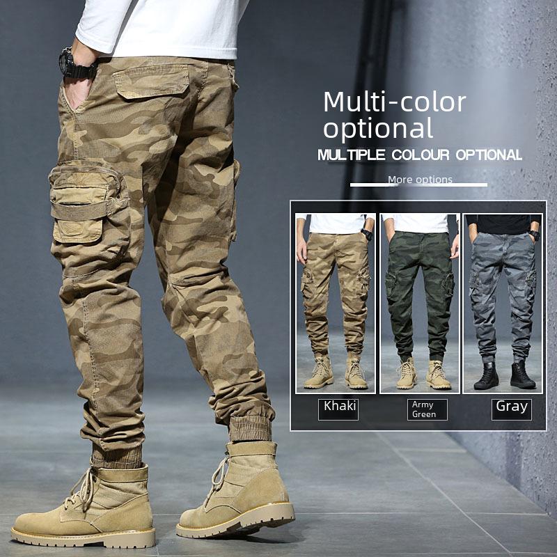 Мужские осенние камуфляжные рабочие брюки: Молодежный стиль, свободный крой, зауженный книзу повседневный дизайн
