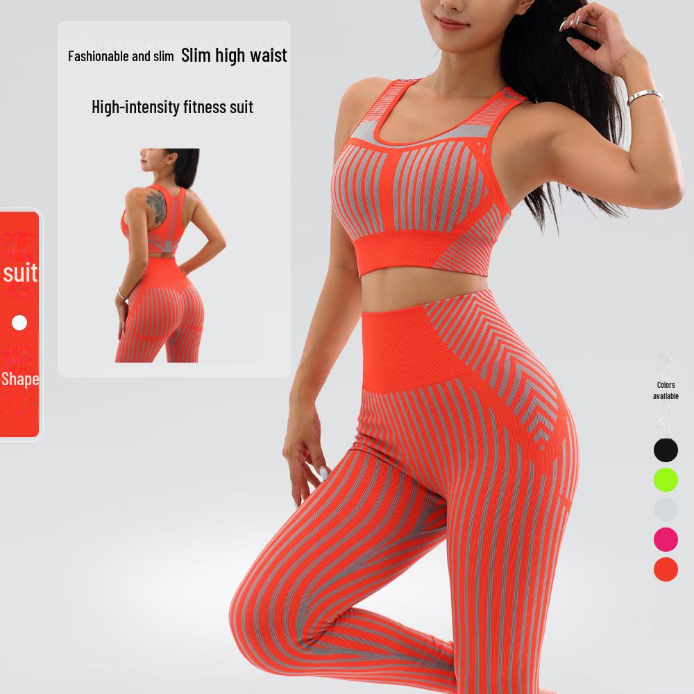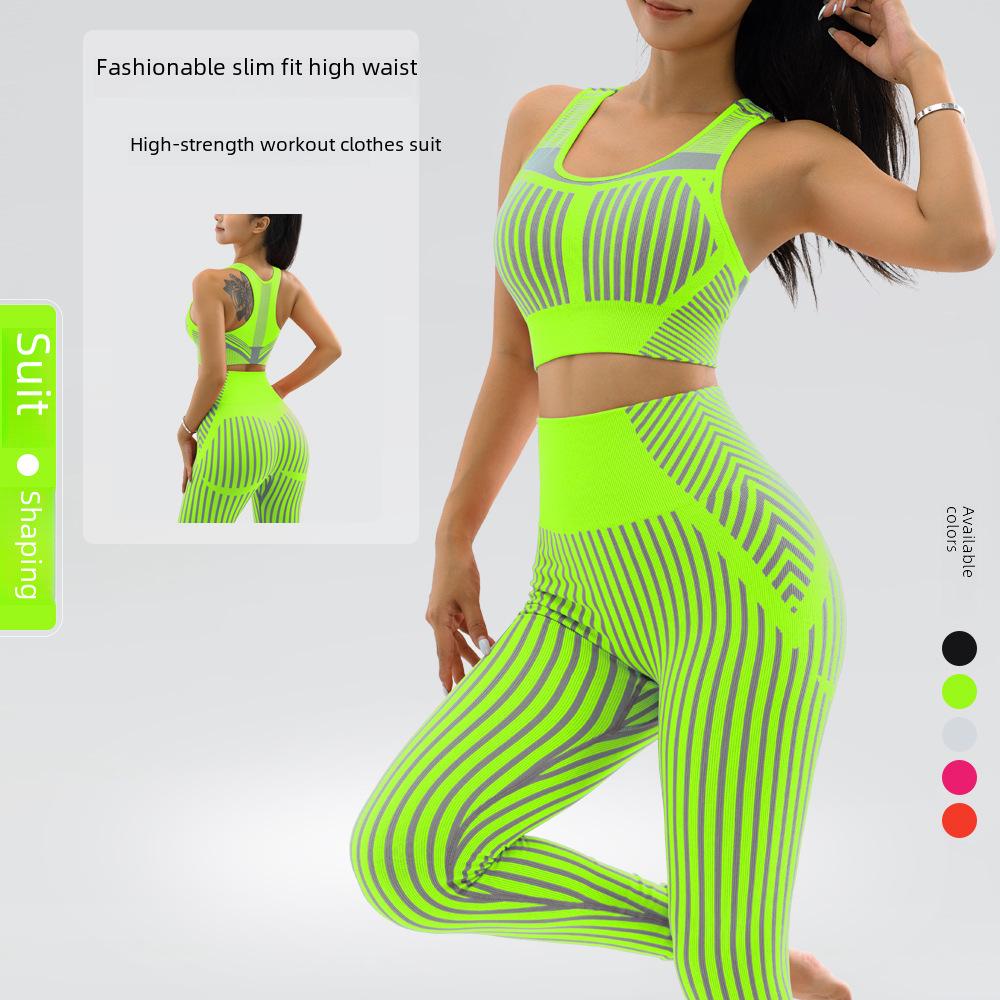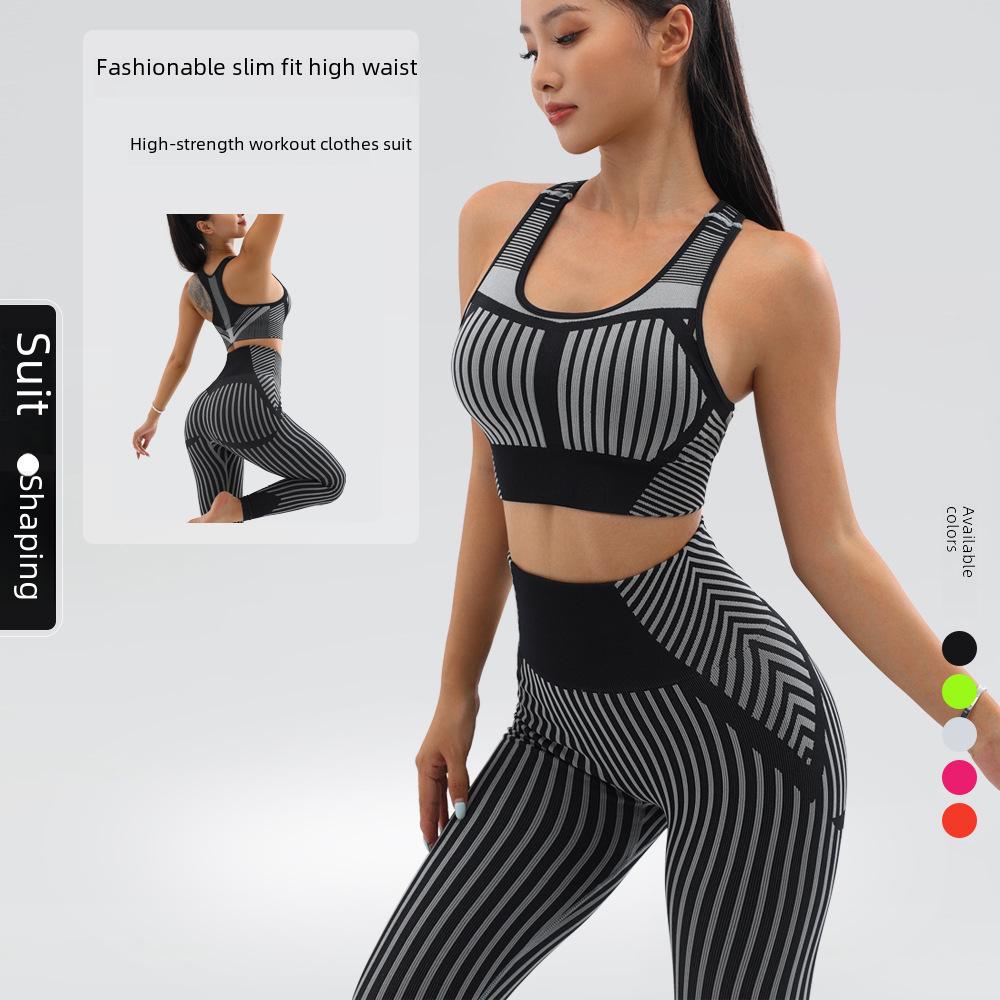 Премиальный набор для трансграничной йоги: Комплект из двух частей для фитнеса: спортивный бюстгальтер, майка и полосатые брюки с высокой талией