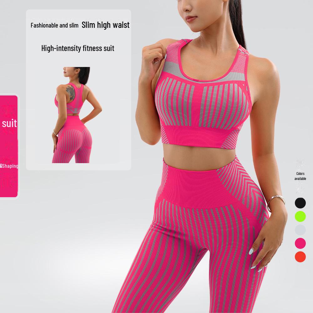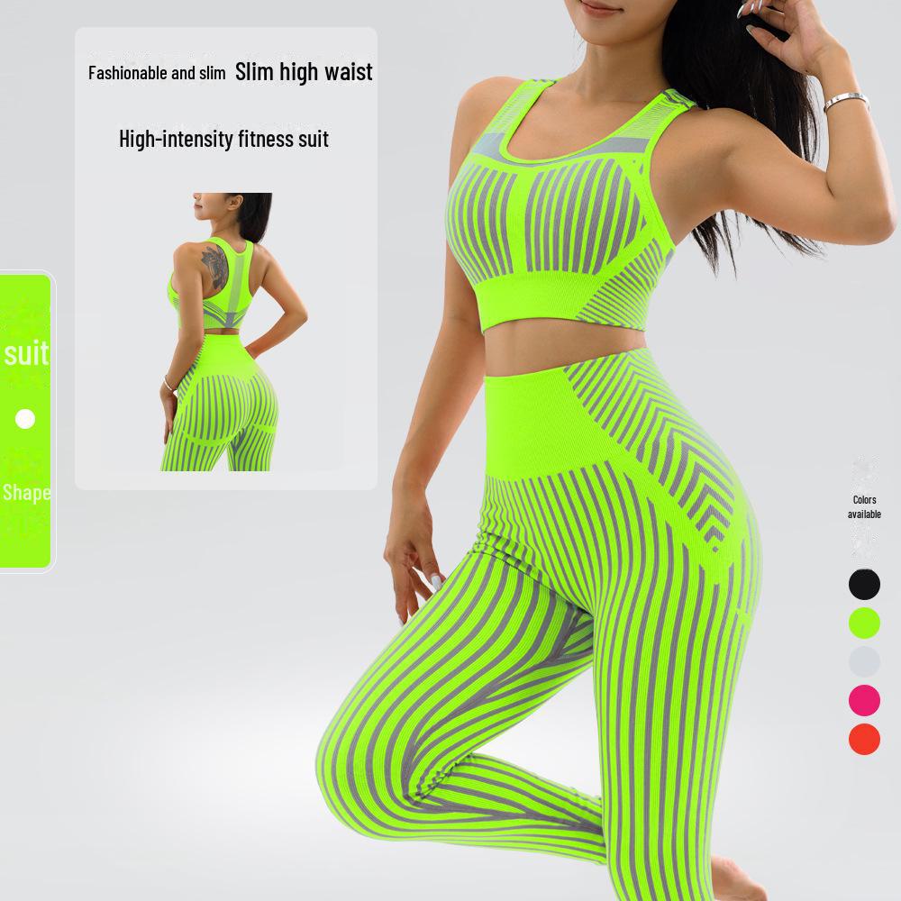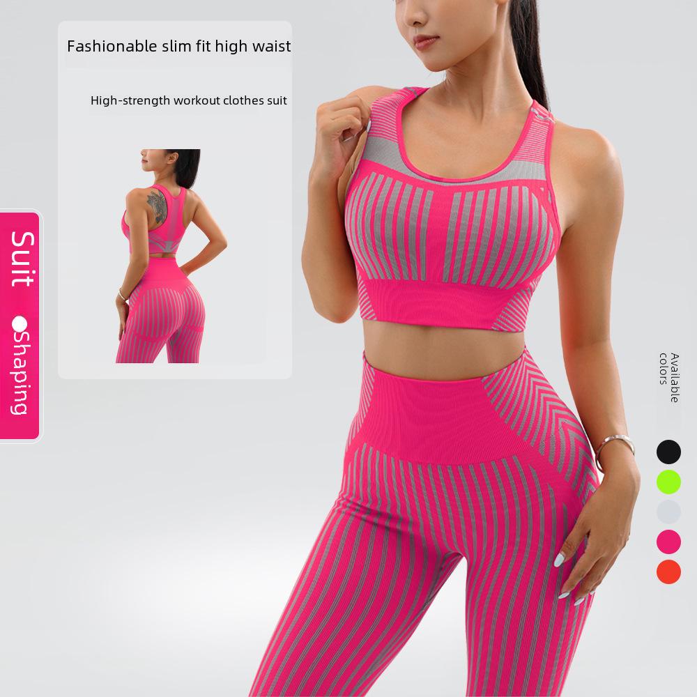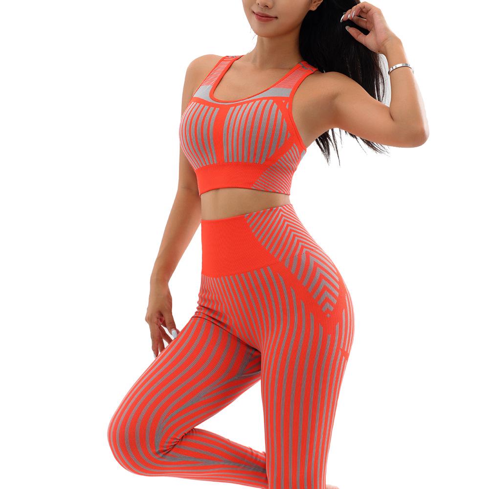 Премиальный набор для трансграничной йоги: Комплект из двух частей для фитнеса: спортивный бюстгальтер, майка и полосатые брюки с высокой талией