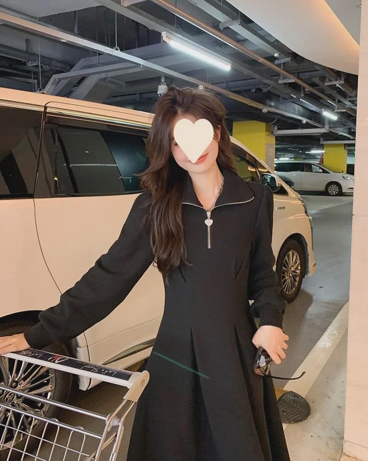 Осень 2025 Женское Платье Больших Размеров С Длинными Рукавами и Вафельной Талией