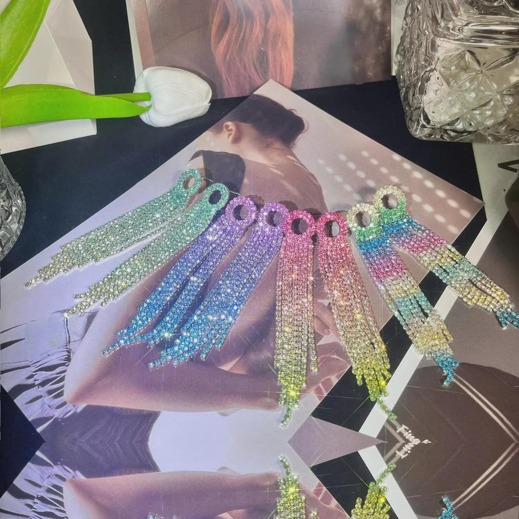 Роскошные европейские и американские серьги-кисточки со стразами: Элегантный дизайн с бриллиантами для женщин.