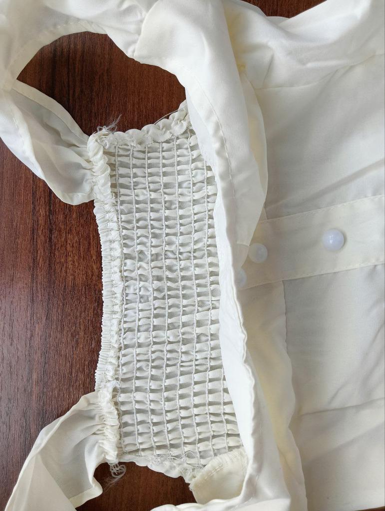 Замеры: длина с учётом шлеек - 137 см, грудь - 104 см, талия - 106 см.