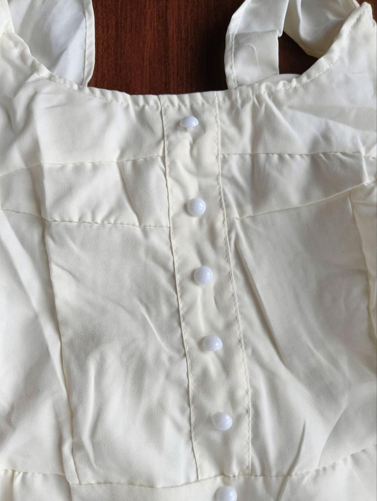Очень простенький легкий сарафанчик..ткань просвечивает, к телу приятна..в жару самое то, но лучше одевать с подьюбником..ткань похоже,что птапель плательный. Размер М на ОГ 89 мал...очень тесно..в бедрах (ОБ 106 )свободно