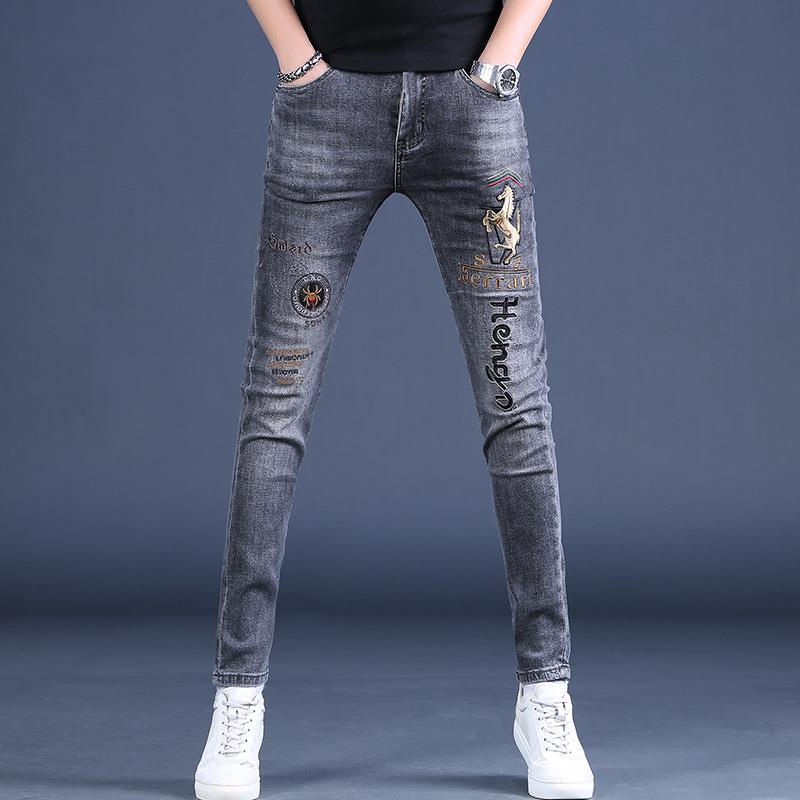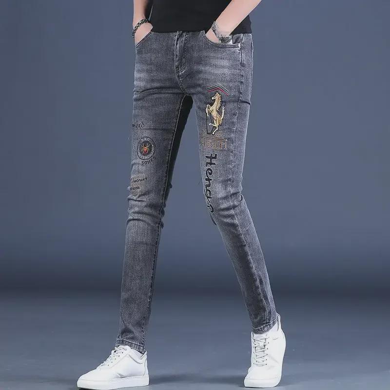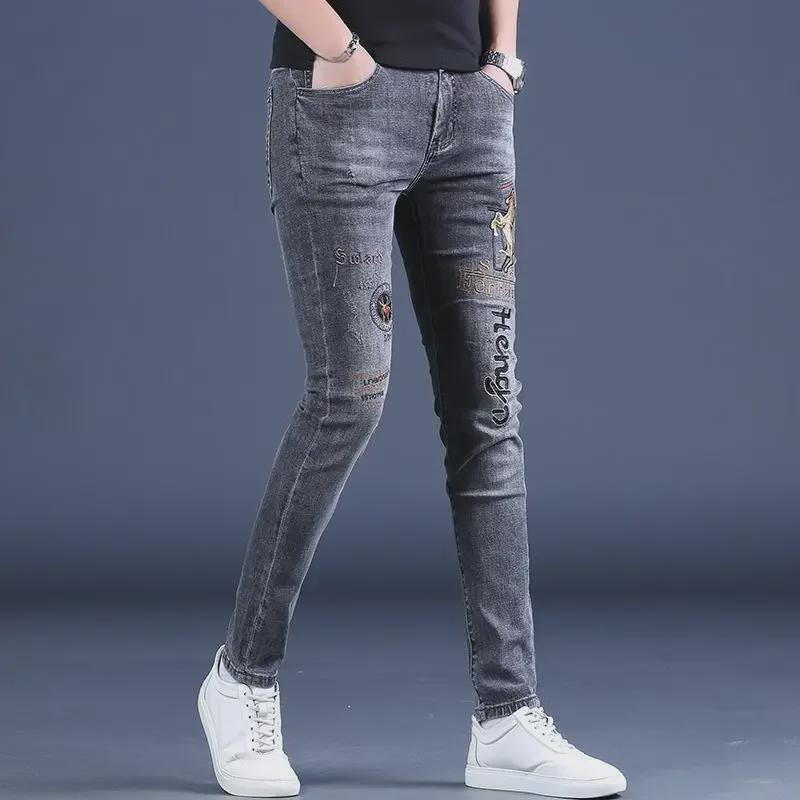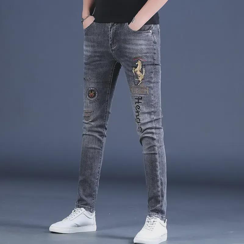 Мужские узкие джинсы с вышитым узором «европейский пони» — облегающий крой, модная одежда на весну/осень