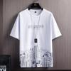 Мужской летний комплект из футболки с коротким рукавом и шорт с принтом «Снежные горы» — корейский модный тренд.