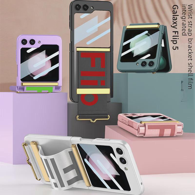 Ультратонкий матовый чехол из твердого пластика с подставкой-браслетом для Samsung Z Flip5 – Модный и противоударный