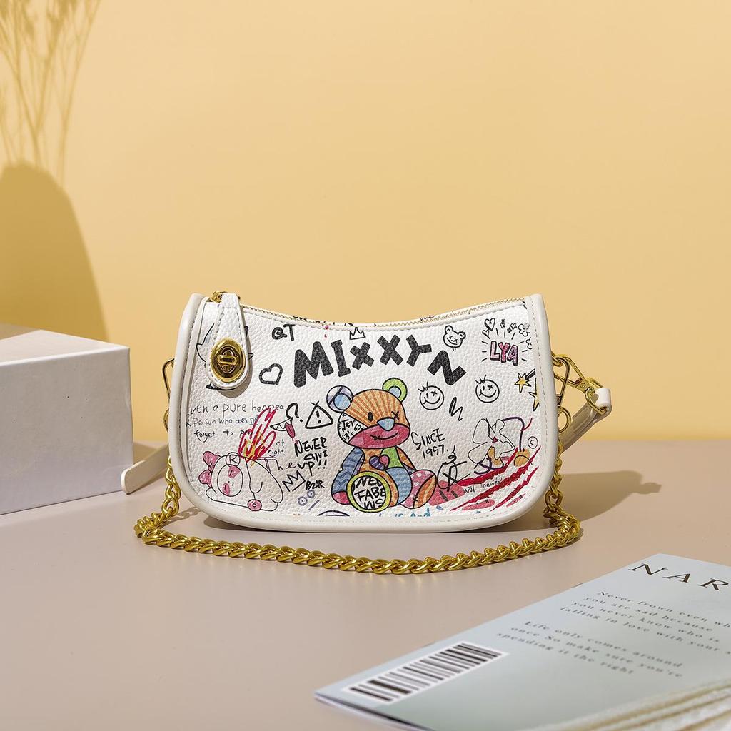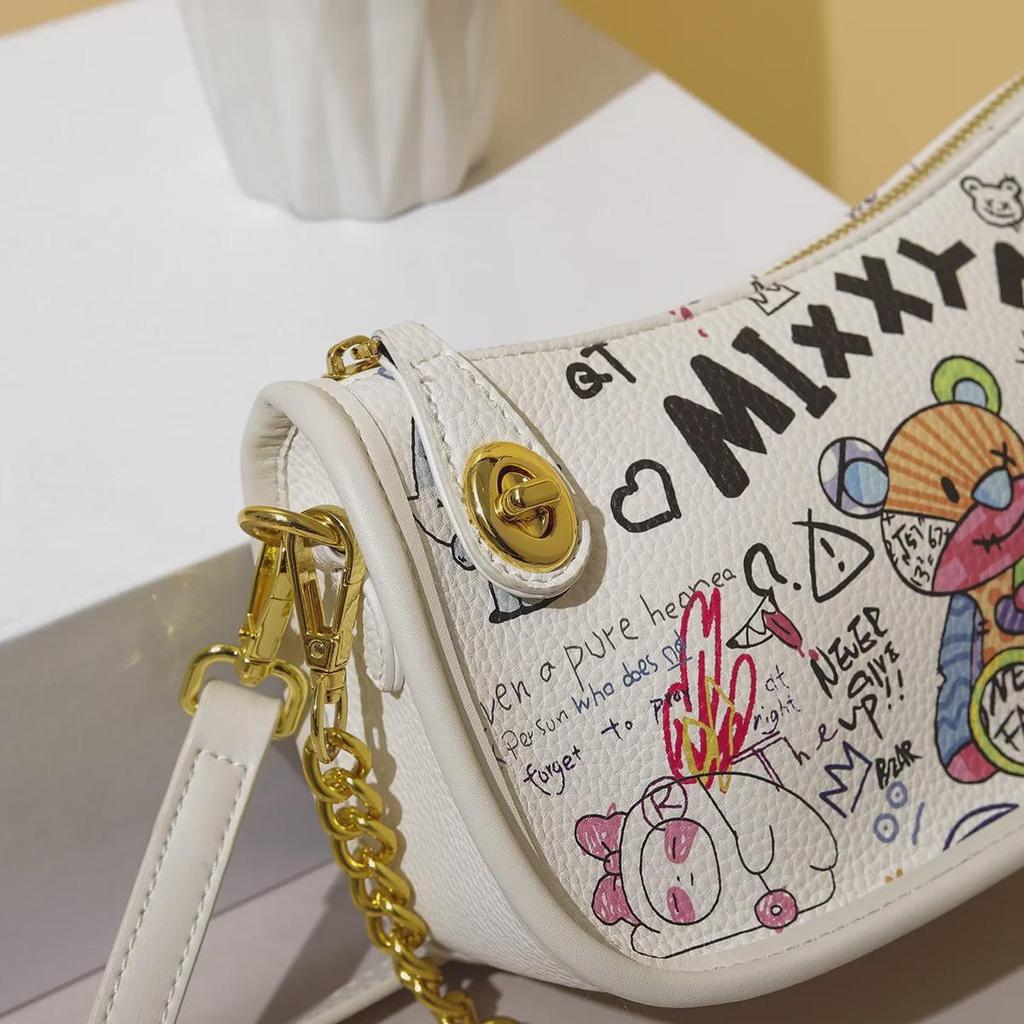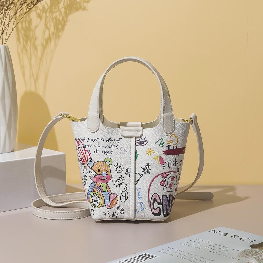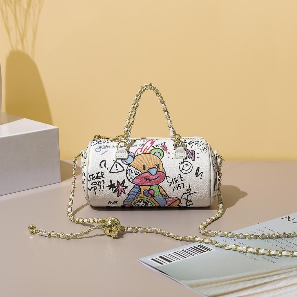 Женская цилиндрическая сумка-мессенджер в стиле граффити 2025 года с рисунком медведя и букв