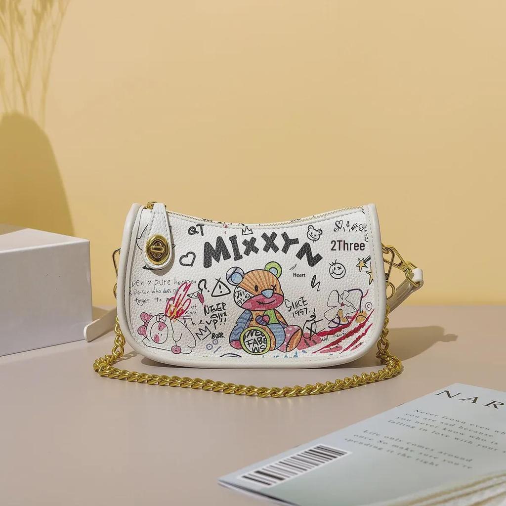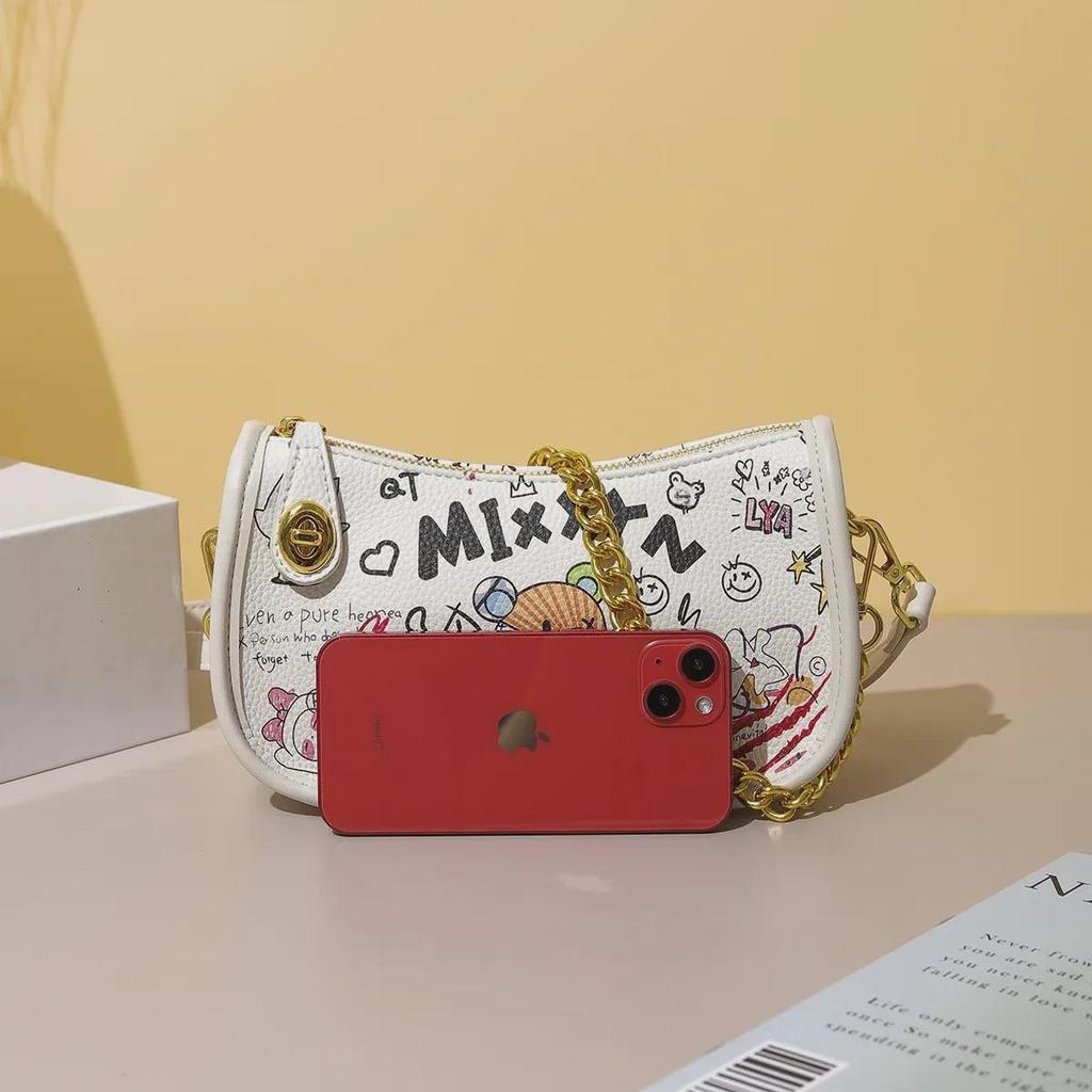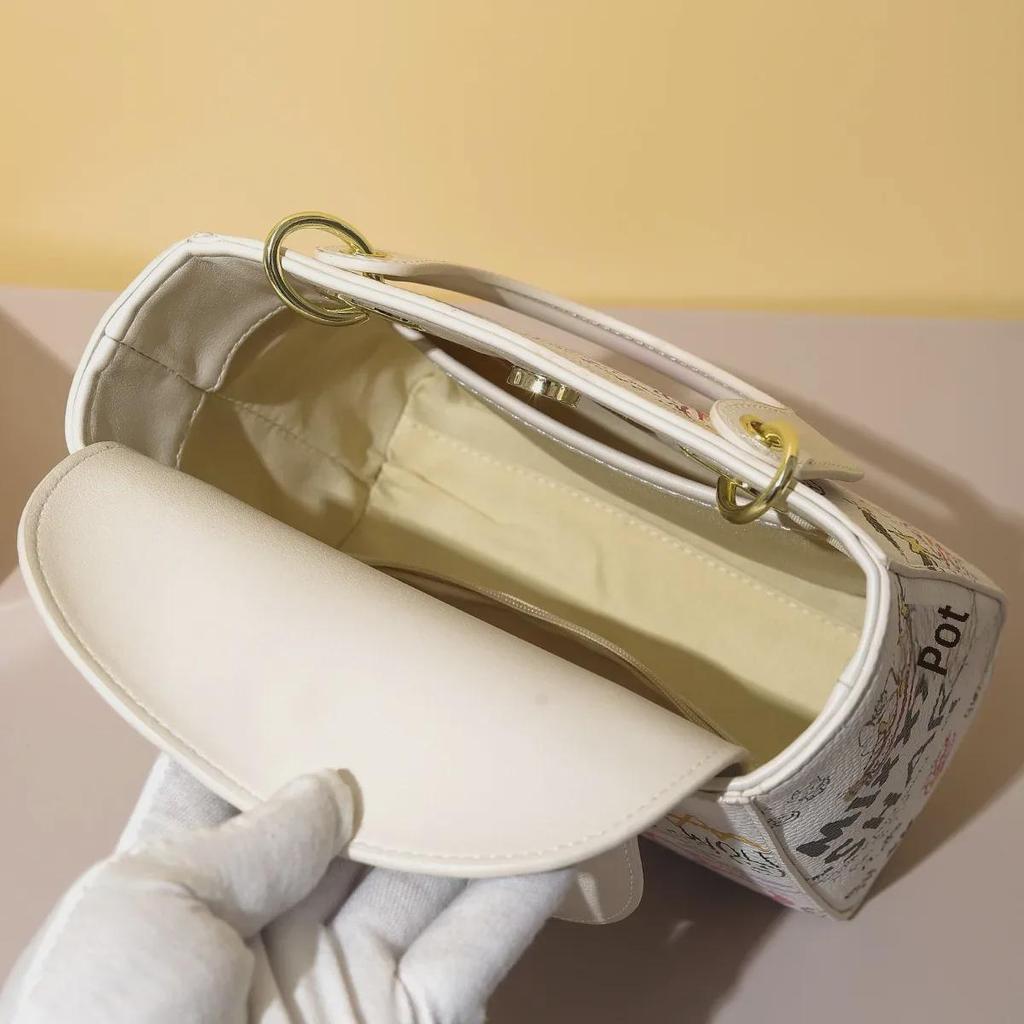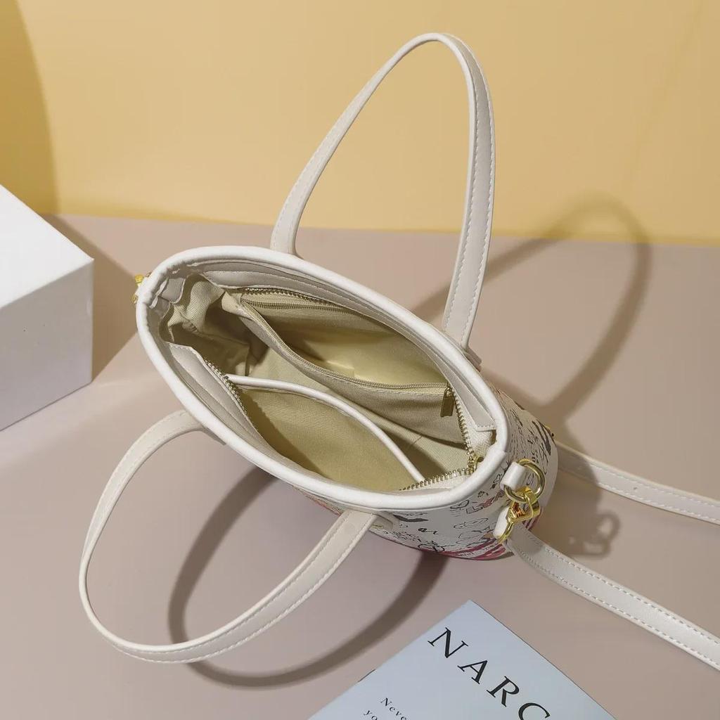 Женская цилиндрическая сумка-мессенджер в стиле граффити 2025 года с рисунком медведя и букв