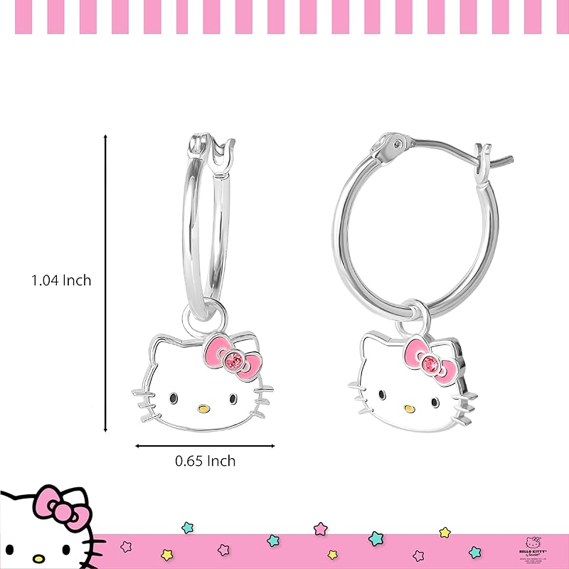 sanrio Hello Kitty & Friends ladies hoop earrings enamel hello kitty Kuromi my melody officially licensed gifts, brass, no jewels