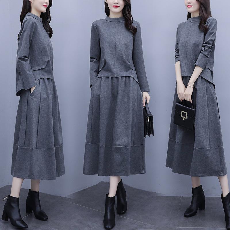 Женское платье-двойка больших размеров с длинными рукавами - коллекция осень/зима 2020, стильная повседневная мода для полных людей с небольшим весом. — купить товар онлайн с бесплатной доставкой до всему миру!
