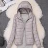 Женская легкая хлопковая куртка-пуховик с капюшоном — облегающий крой, большой размер, короткий стиль на осень и зиму 2022 г.
