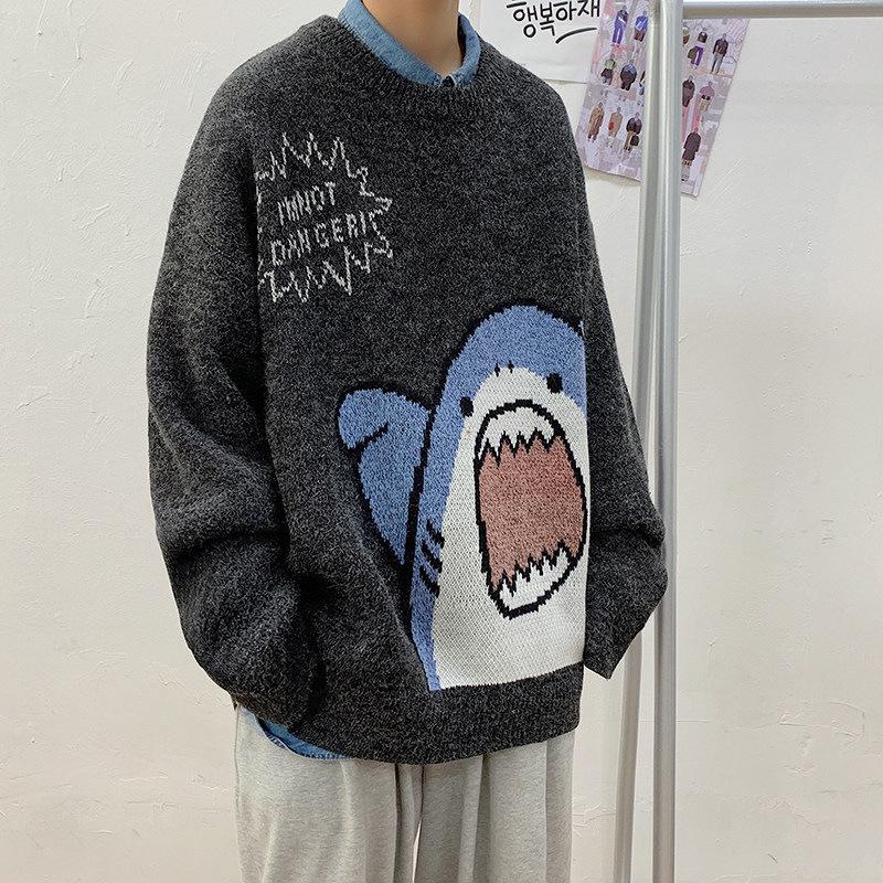 Осенний мультфильм милый французский стиль пары свободный свитер-пуловер для женщин