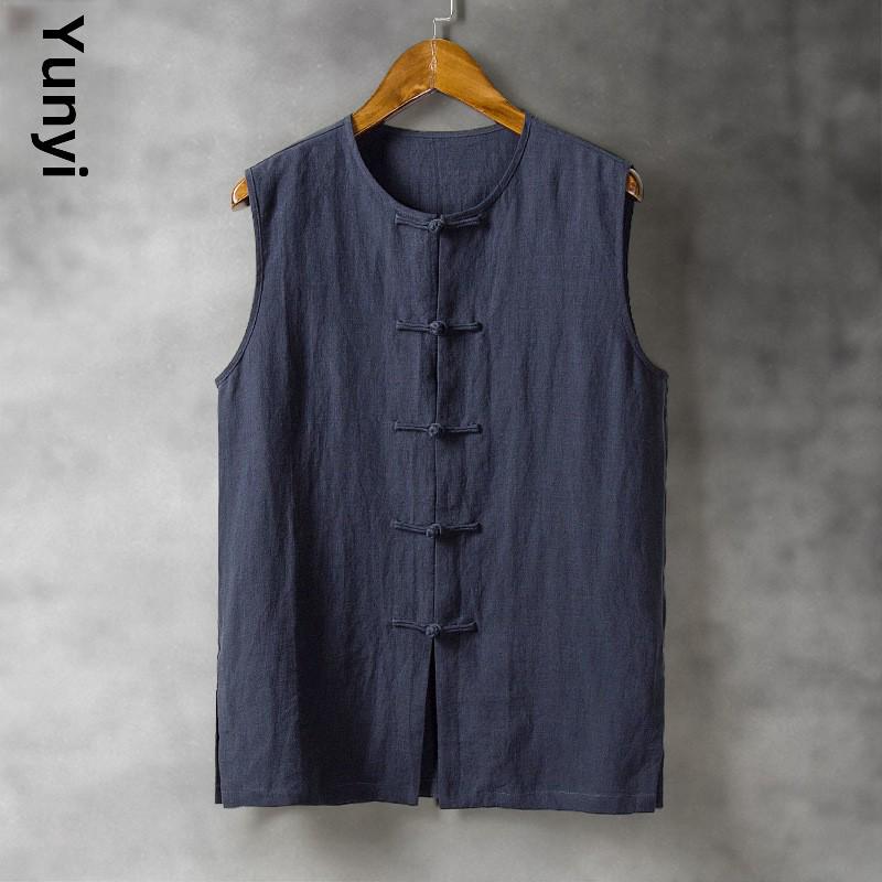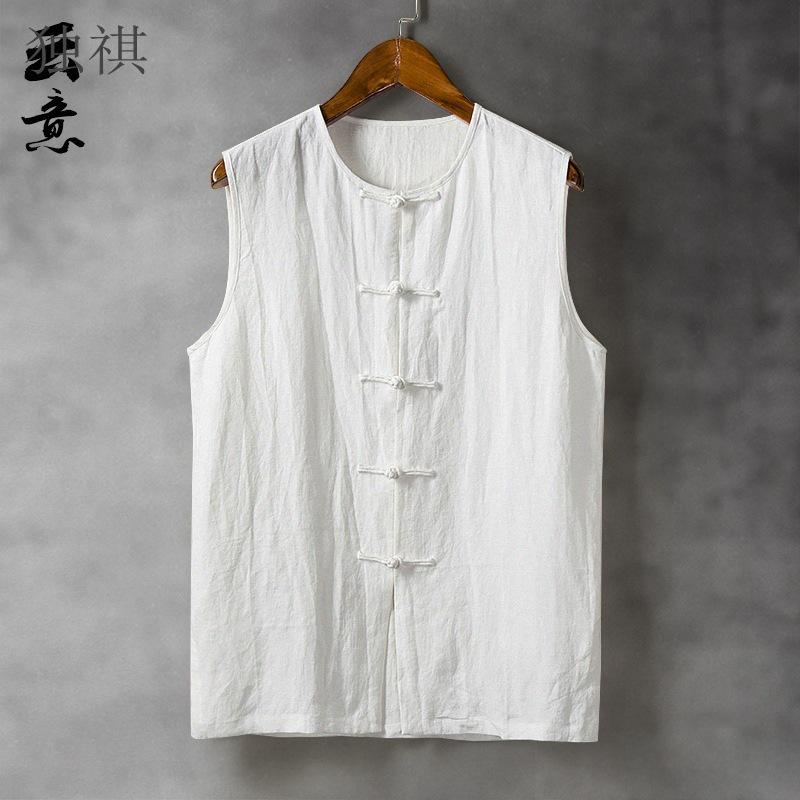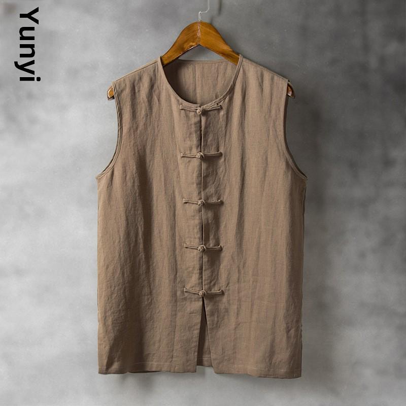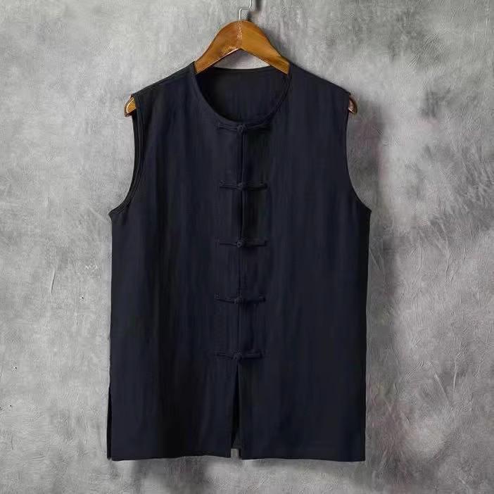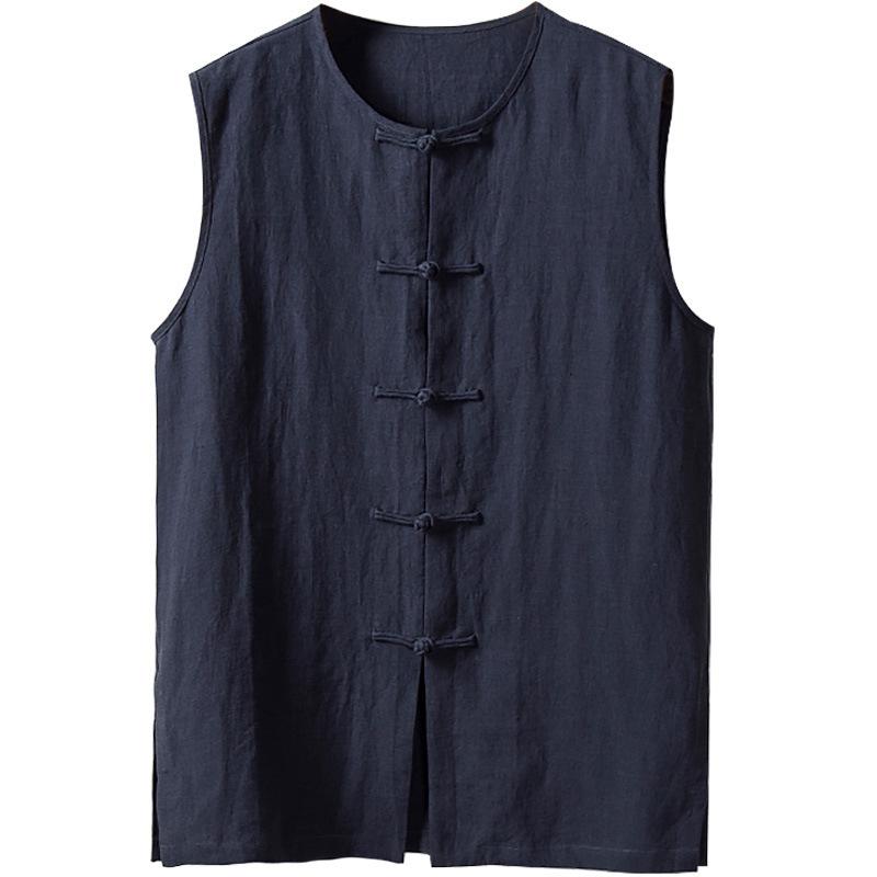 Мужской жилет в стиле ретро в китайском стиле из льна Тан — свободный крой без рукавов