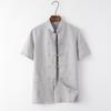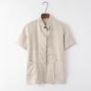 Мужской летний тонкий льняной костюм Танг - топ с короткими рукавами для людей среднего и пожилого возраста