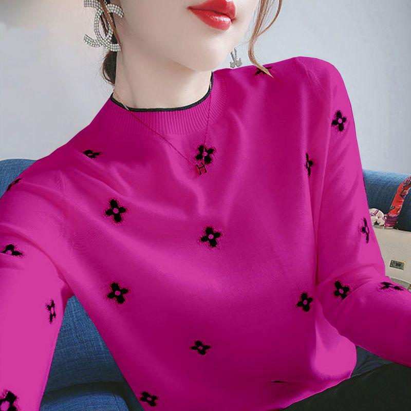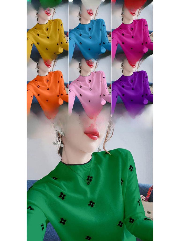 Изысканный вышитый женский свитер - 2023 Осень/Зима, облегающий крой, размер плюс, длинный рукав, трикотаж