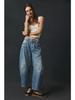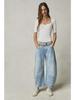 Новая европейско-американская мода: Женские свободные брюки с заниженной талией из выстиранного денима с широкими штанинами