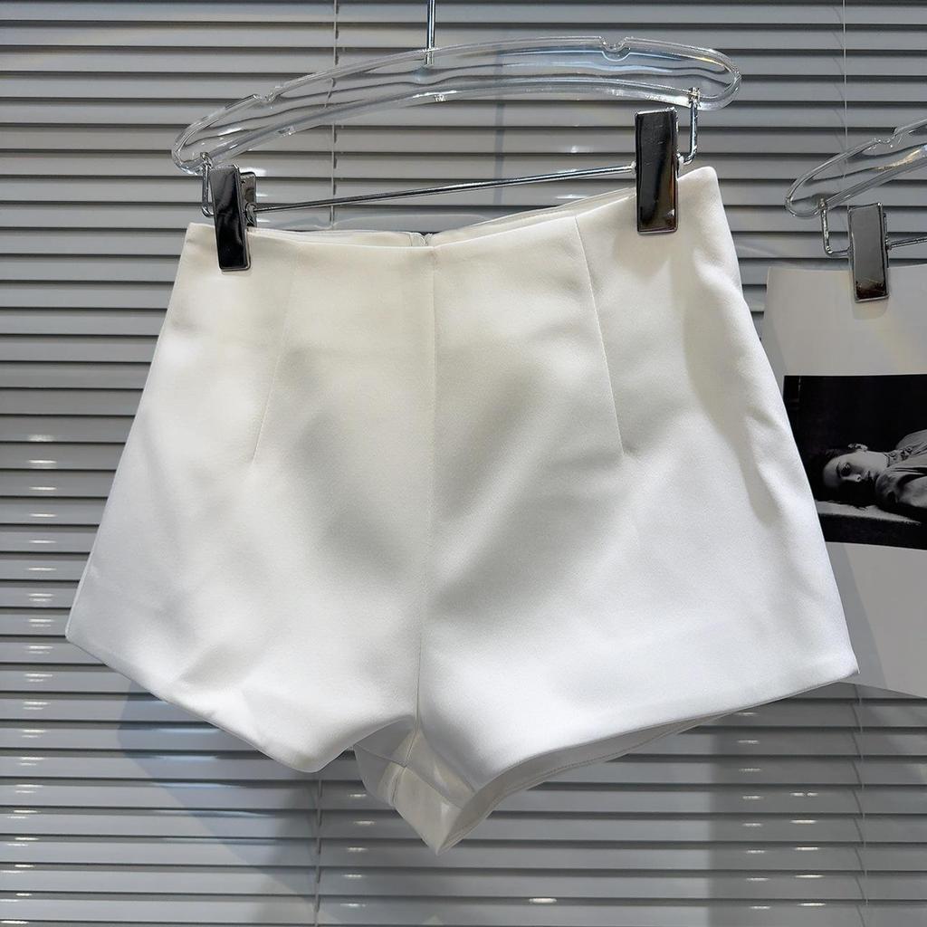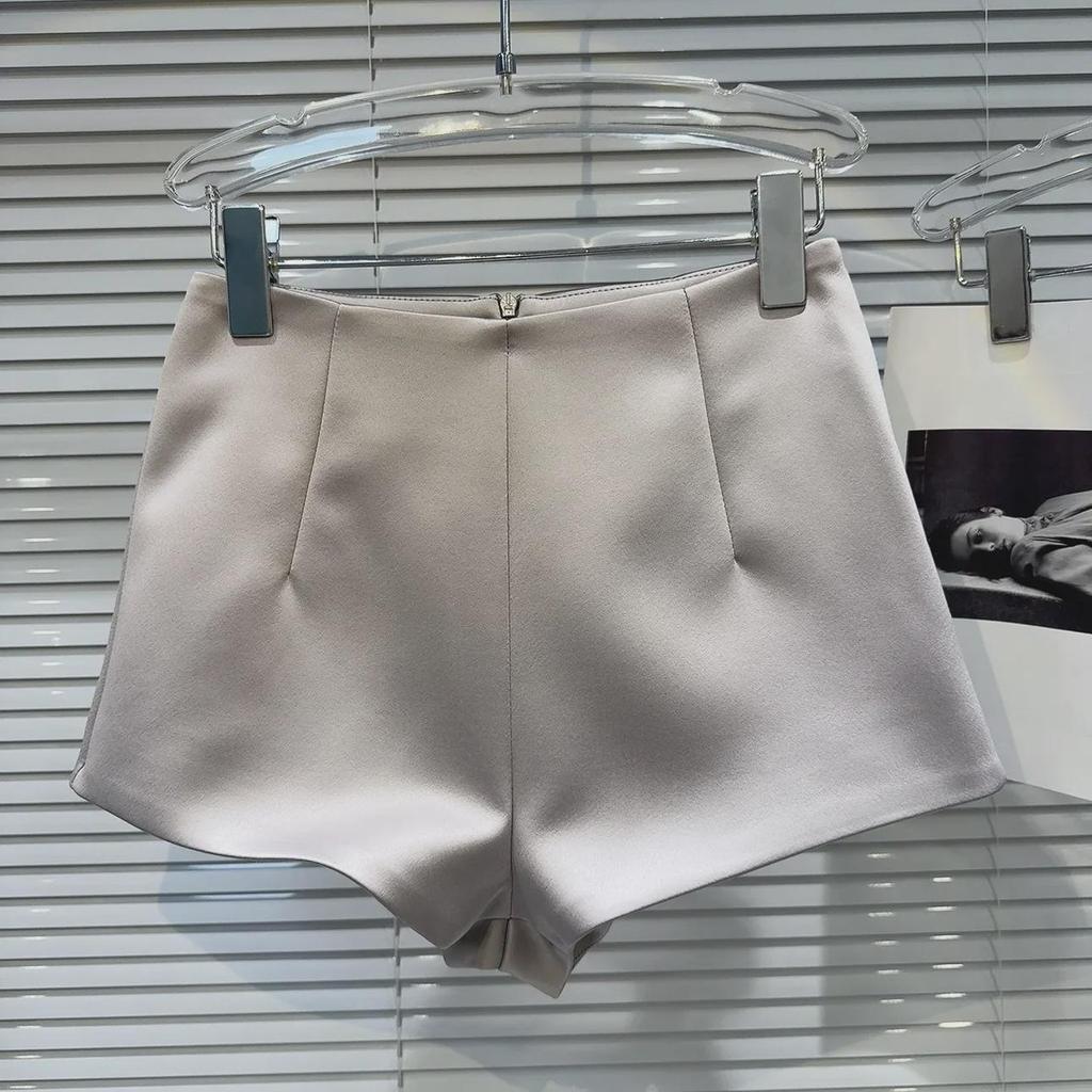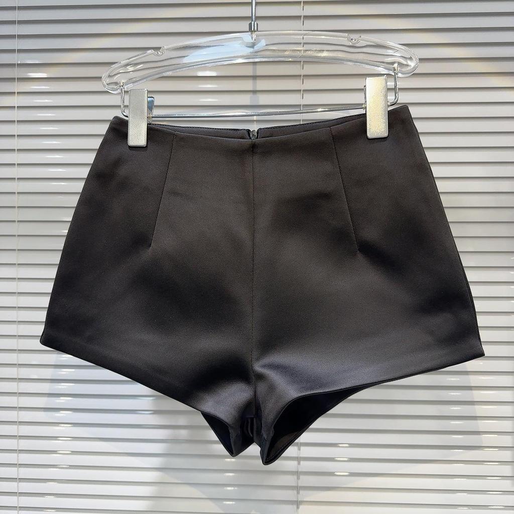 Весна 2024 г. Атласные шорты А-силуэта с высокой талией в корейско-французском стиле
