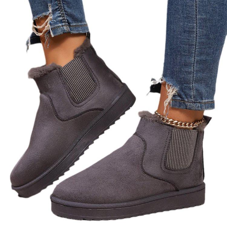 Оставайтесь в тепле и стильно этой зимой с этими большими зимними ботинками, созданными специально для женщин.. Эти ботинки с верхом из замши выглядят шикарно и изысканно, а также отличаются исключительной прочностью.. Утолщенный бархат обеспечивает дополнительный слой тепла, что делает их идеальными для холодной погоды.. Подкладка из искусственного меха добавляет ощущение уюта, сохраняя ноги в тепле в течение всего дня.. Эти ботинки с удобной конструкцией легко надевать, что делает их идеальными для тех, кто находится в движении.. Благодаря резиновой подошве они обеспечивают надежное сцепление и поддержку, что делает их практичным выбором для зимней моды.
