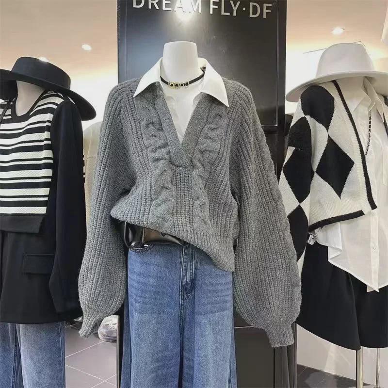 Женский вязаный свитер в стиле ретро с воротником-поло в стиле ленивой моды на осень/зиму