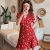 Летнее корейское платье средней длины из шифона с V-образным вырезом и цветочным принтом 2025 года для студенток — купить товар онлайн с бесплатной доставкой до всему миру!