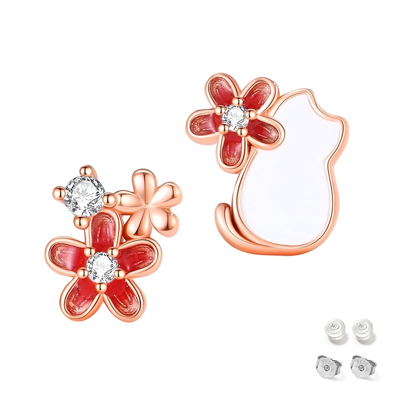[Дизайн «Кошка и цветок»] Нежное розовое золото выражает пушистое ощущение кошки. Более того, высококачественный циркон сверкает и делает его более любимым. Даже если у вас есть украшения с анималистичными мотивами, которые могут выглядеть по-детски, вы можете использовать эти серьги небольшого размера и асимметричного дизайна, такие как милые серьги с мотивами кошки и цветущей сакуры.. Просто надев его, вы поднимете себе настроение. Дизайн очень стильный, поэтому его можно использовать не только для повседневной носки, но и для свадеб, вечеринок после свадьбы, вечеринок, званых ужинов и множества других случаев.