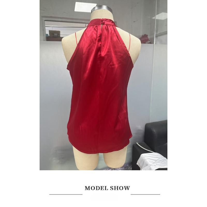 Женский летний атласный топ с открытыми плечами и вырезом горловины, а также атласные блузки и рубашки без рукавов