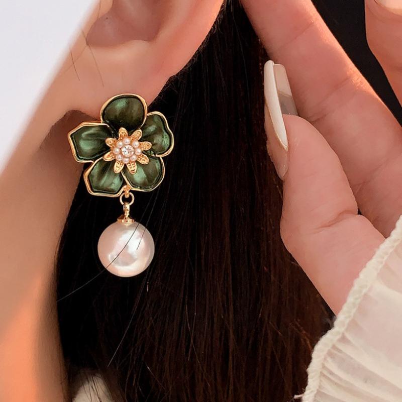Серьги-подвески из французского легкого микронабора с цирконием, белой эмалью и жемчугом Камелия, новые модные ювелирные изделия, аксессуары для женщин