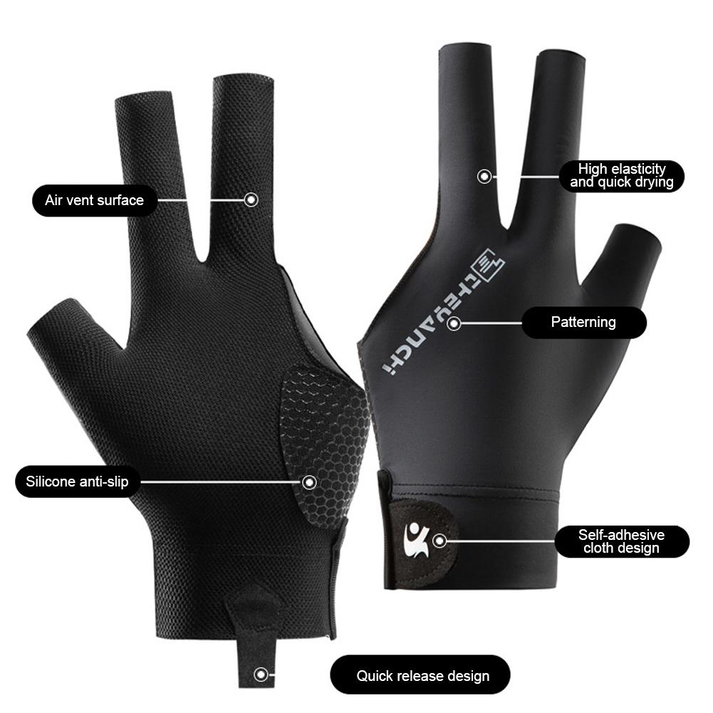 1 шт. быстросъемные перчатки для бильярда с тремя пальцами и нескользящей сетчатой тканью, дышащие перчатки для тренировок по снукеру