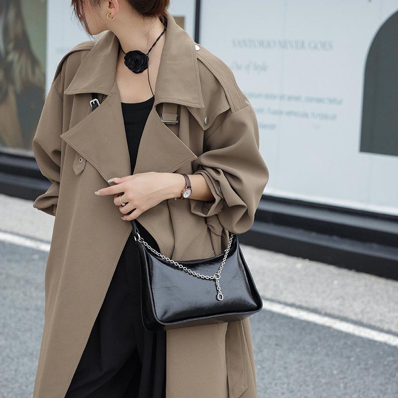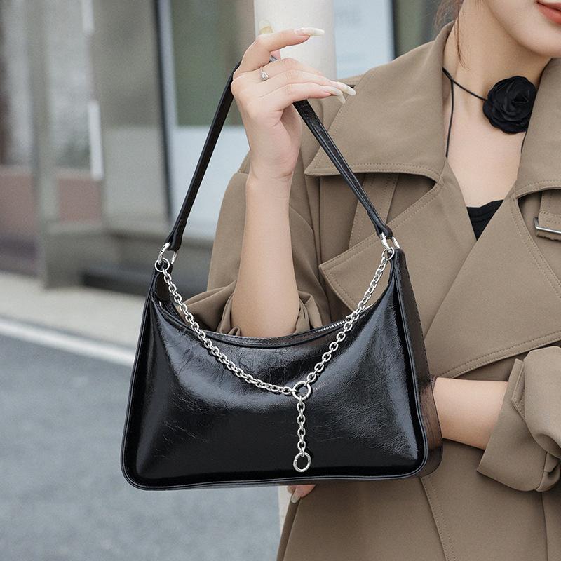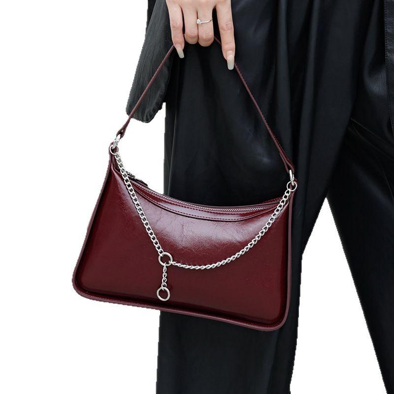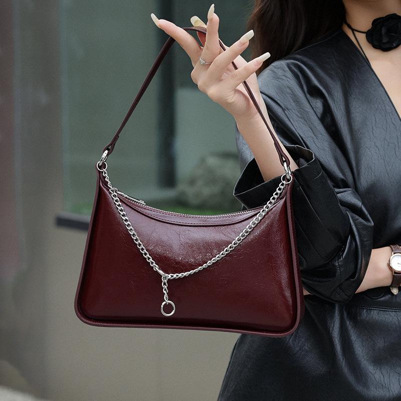 Сумка через плечо для женщин, новая модная сумка для подмышек, сумка через плечо из масляно-вощеной кожи, сумка через плечо, темпераментная сумка на цепочке