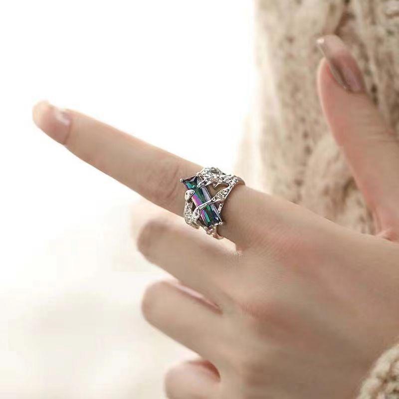 Кольцо с открытыми шипами в виде лавы и жидкости, рубиновое, европейское и американское, с высоким чувством, открытый указательный палец, сладкий прохладный ветер, полое кольцо