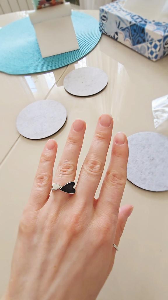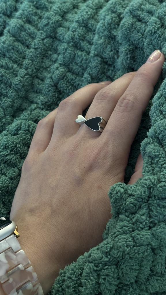 Классное колечко 🖤🤍 графичное, оригинальное 👌 Стильно смотрится, комфортное в носке. Колько разъемное, можно аккуратно растянуть или сузить на свой размер, это удобно.