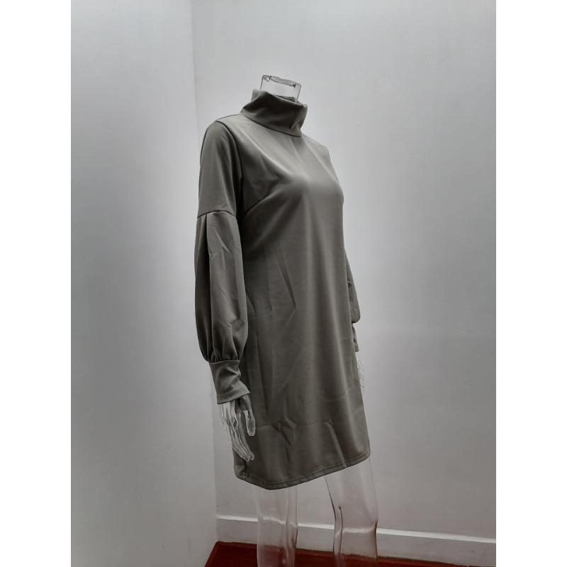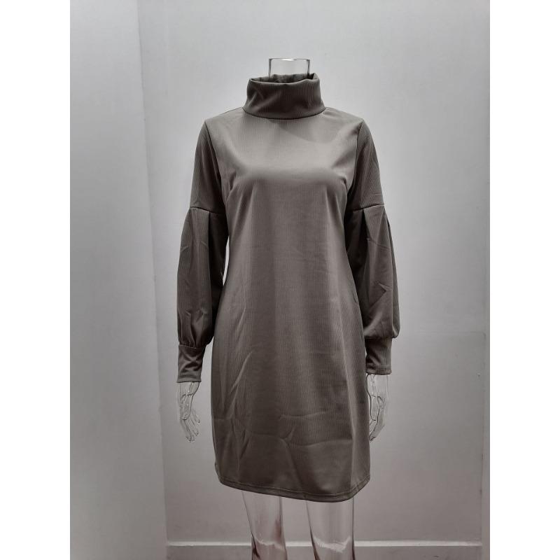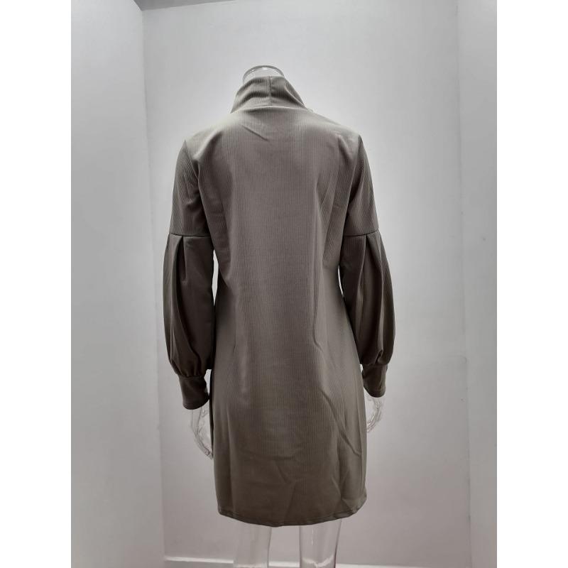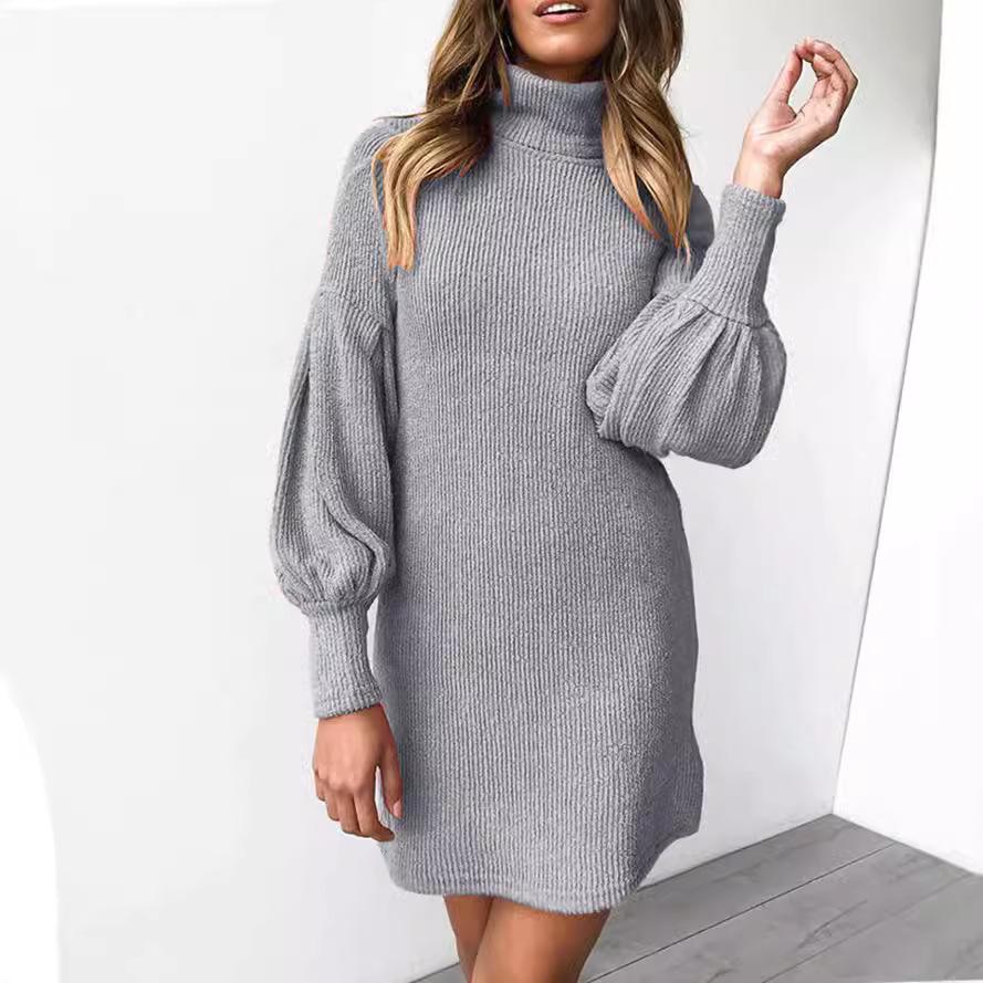 Осенне-зимнее женское платье с высоким воротом и расклешенными рукавами
