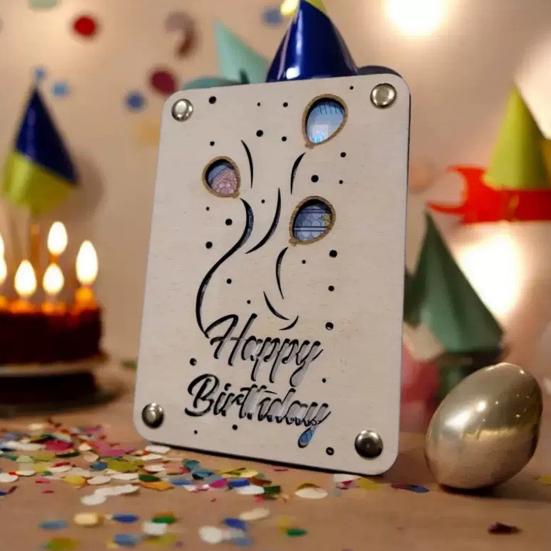 Уникальный полый узор содержит искренние пожелания и благословения, что делает его идеальным подарком на день рождения.. Этот держатель универсален в использовании и может использоваться в качестве декоративного элемента для спальни, офиса, обеденного стола или садовой вечеринки.. Этот деревянный держатель идеально подходит для подарка друзьям, семье или коллегам и представляет собой интересный и креативный способ преподнести денежные подарки или подарочные карты.