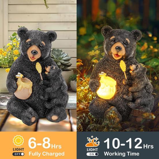 Расписанные вручную детали и изысканное мастерство делают дизайн медведя еще более изысканным, символизируя материнскую любовь своим нежным светом.. Эта статуэтка медведя, идеально подходящая для подарка или личного пользования, излучает приятное свечение от лампы, накрытой медовым горшком, создавая уютную атмосферу в вашем саду или на террасе..