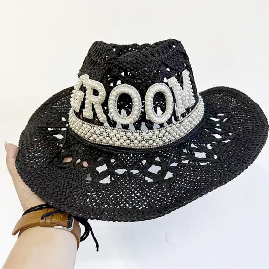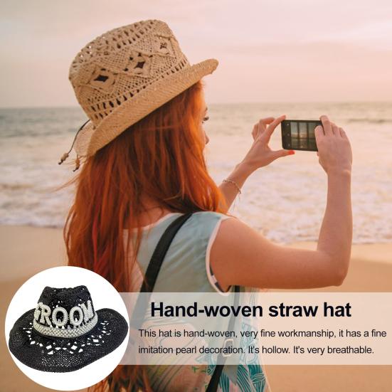 Элегантность ручной работы: Тщательно выполненная с тонким мастерством, эта соломенная шляпа излучает очарование ручной работы, а изысканные искусственные жемчужины придают ей нотку изысканности.