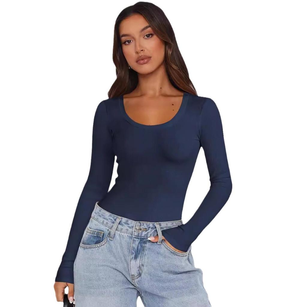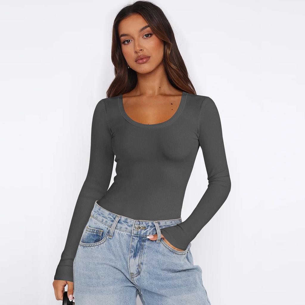 Однотонная рубашка с U-образным вырезом и нитками Y2K Одежда женская узкая рубашка с длинными рукавами для женщин Топы с открытыми плечами