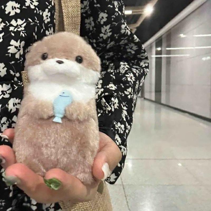 Мультяшные милые выдры держат рыбу плюшевая кукла с цепью креативные кавайные брелоки подвеска ювелирные изделия школьная сумка кошелек подвески